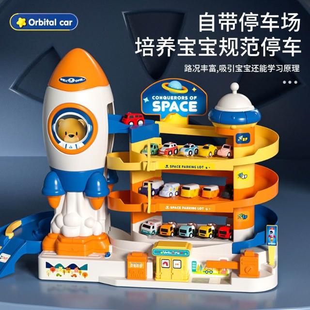 兒童火箭太空闖關大冒險男孩軌道車玩具小汽車大樓停車場益智批發