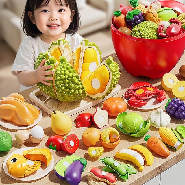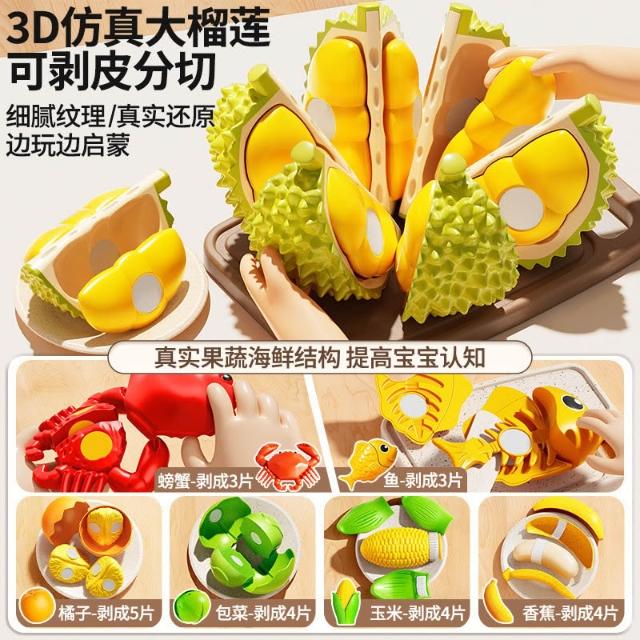 兒童水果切切樂仿真過家家玩具果蔬可剝皮啃咬榴蓮草莓男女孩禮物