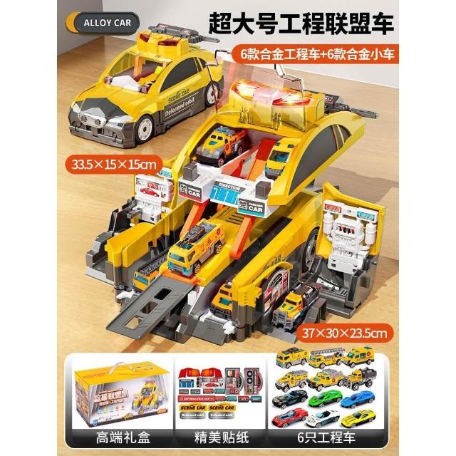 新款兒童收納場景消防警車變形彈射軌道停車場聲光益智模型玩具車