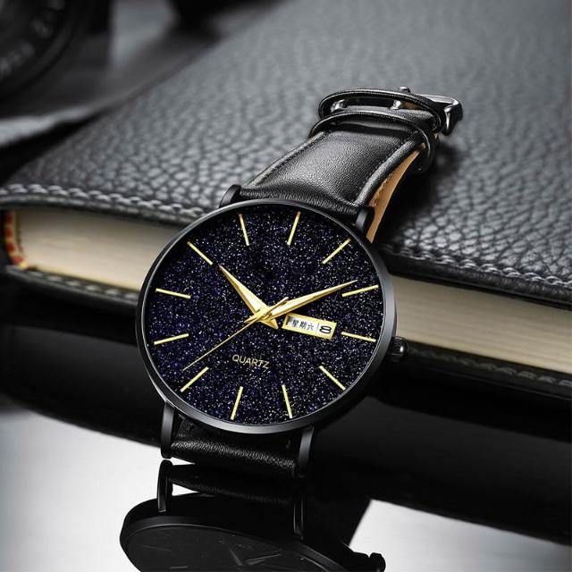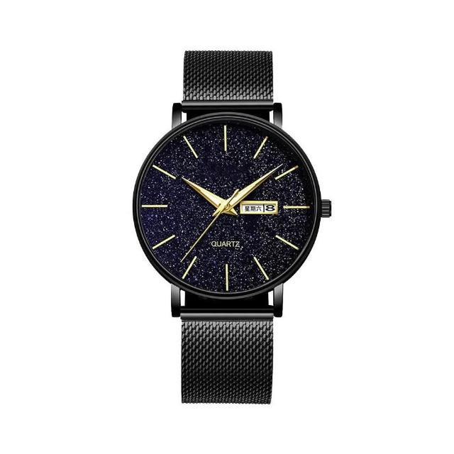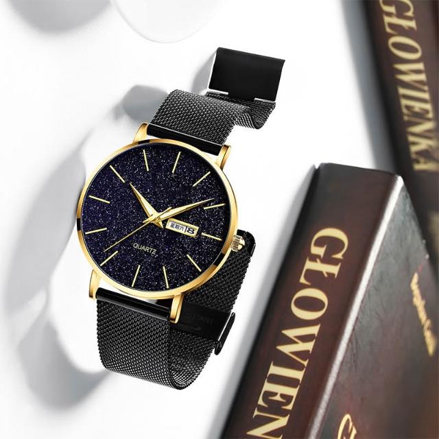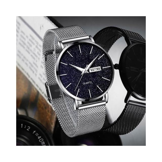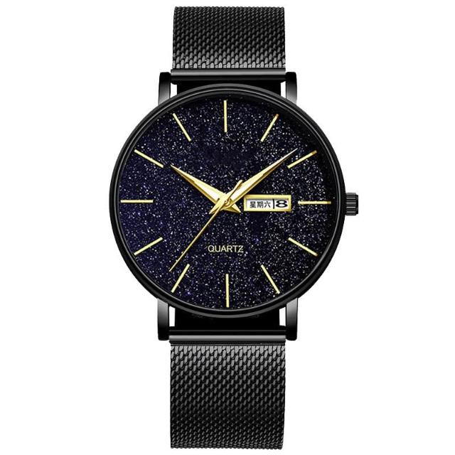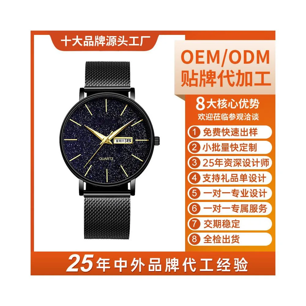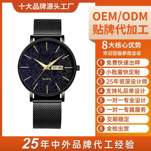 滿天星時尚男士雙日曆手錶手錶男 高檔夜光防水石英表批發定制