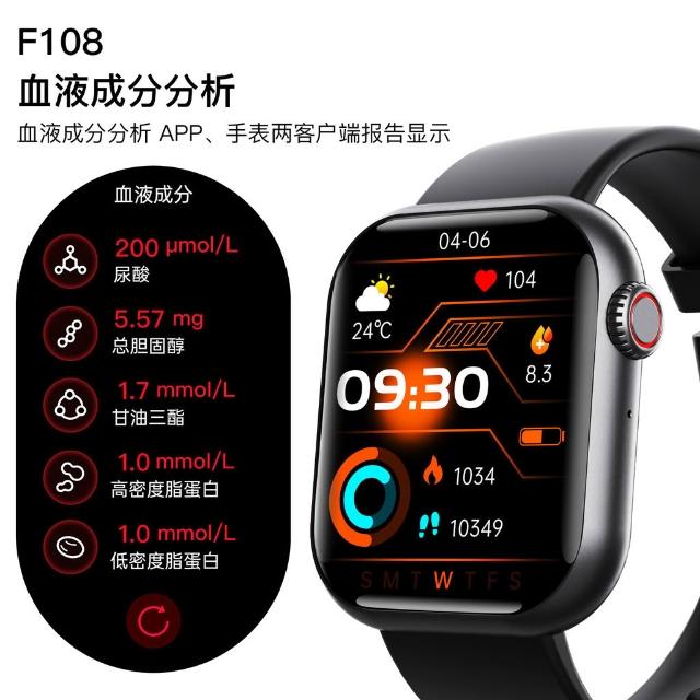 F108智能手錶無創血糖尿酸血脂監測血壓藍牙通話手錶智能黑科技