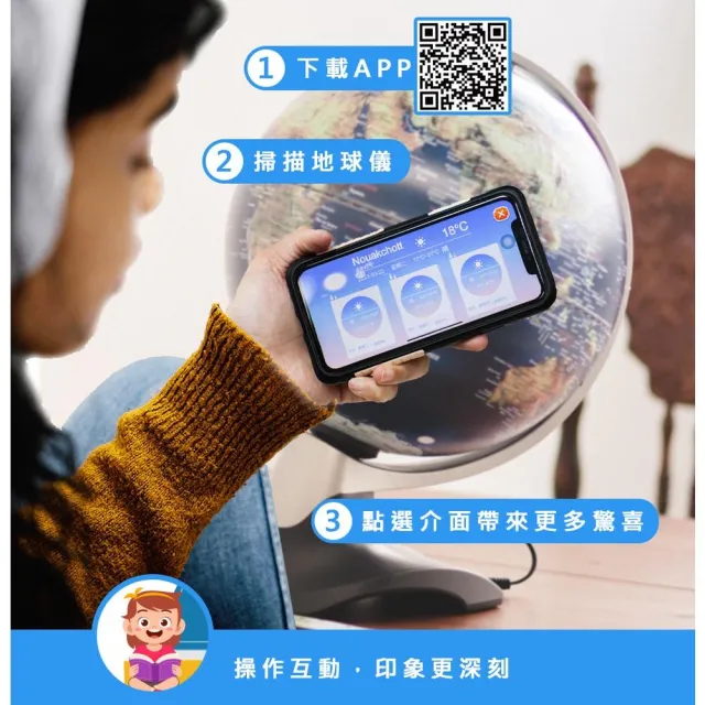 SkyGlobeAR互動款 12吋衛星觸控三段式立體地球儀 發光/附燈 立體地圖 台灣製 開學禮 開店禮 擺飾 家飾 入厝禮 搬家禮