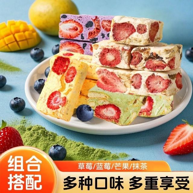 兜米甄選凍幹草莓藍莓芒果羊奶芙草莓雪花酥拉絲整箱糕點宿捨零食新鮮日期