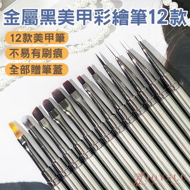 金屬黑美甲彩繪筆|12款完整美甲筆 附筆蓋|美甲筆 彩繪筆 凝膠筆 圓筆 拉線筆 美甲 美甲材料 美甲工具 C-27
