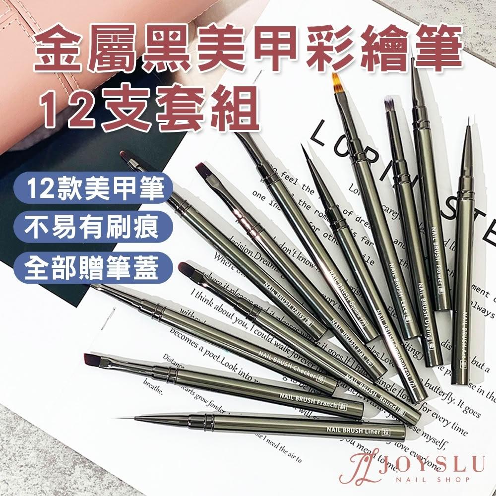 金屬黑美甲彩繪筆|12支完整套組 附筆蓋|美甲筆 彩繪筆 凝膠筆 圓筆 拉線筆 美甲 美甲材料 美甲工具 C-27