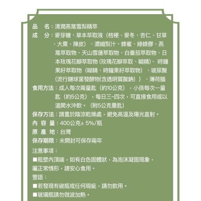 清潤燕窩雪梨精萃 頂級燕窩雪梨膏 潤喉 真燕窩添加 雪梨慢熬 漢方精華萃取 民視消費高手推薦(正品公司貨)