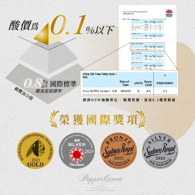 PepperGreen 澳翠澳洲鮮榨 特級初榨橄欖油 250ml系列 (晨光雙重奏/輕享隨行組) 酸價0.1%/金獎生飲級
