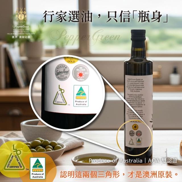PepperGreen 澳翠澳洲鮮榨特級初榨橄欖油 莊園精選多規格系列 (溫潤果香/酸價趨近0.1%/金獎生飲級)