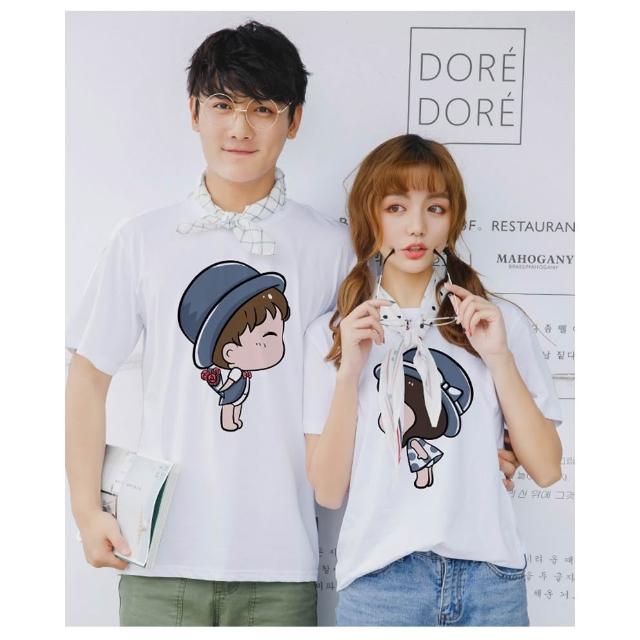 現貨 情侶裝 潮T 獨一無二 24小時快速出貨 MIT台灣製【YC547】純棉短袖-藍色小禮帽情侶 團體服
