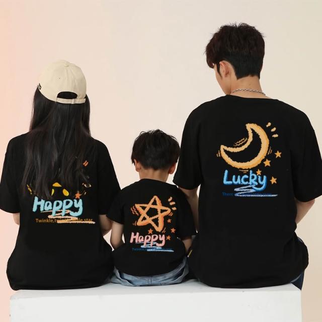 子裝 背後 黃橘系星星月亮太陽 純棉 台灣製 班服【YC780短袖 一家三口 全家福 艾咪E舖