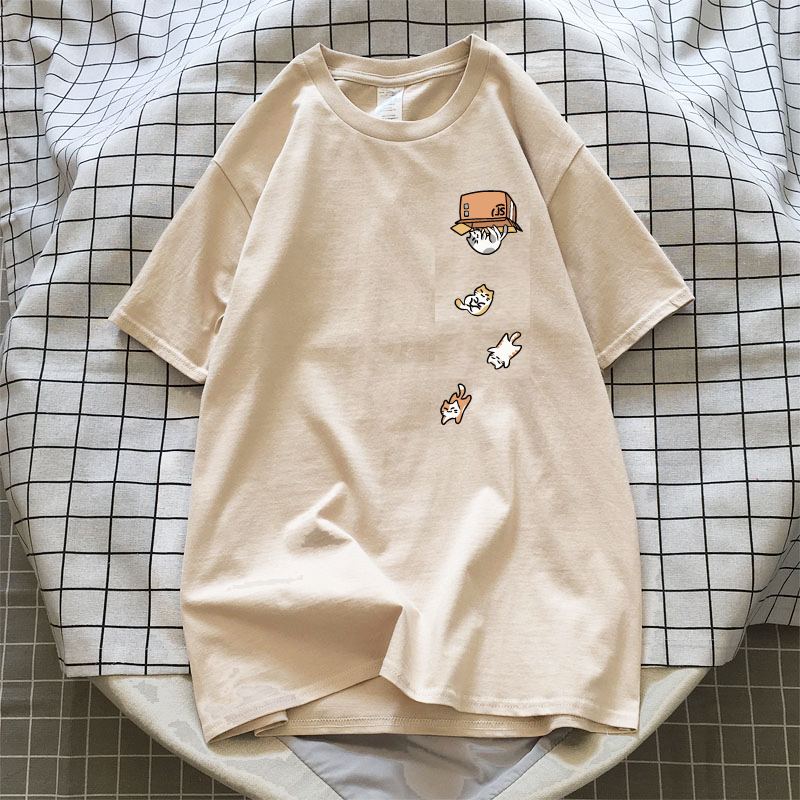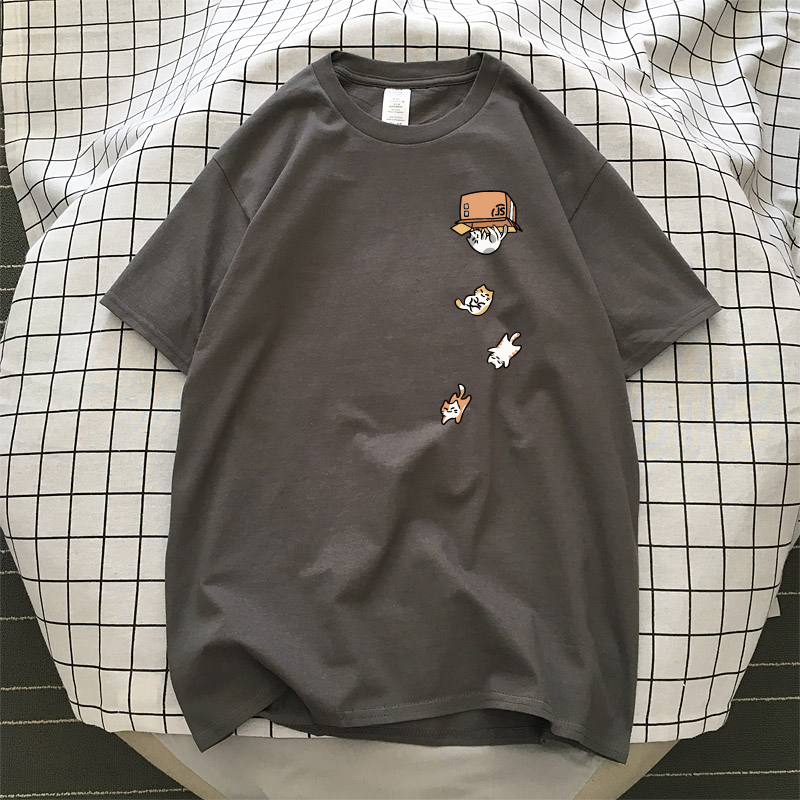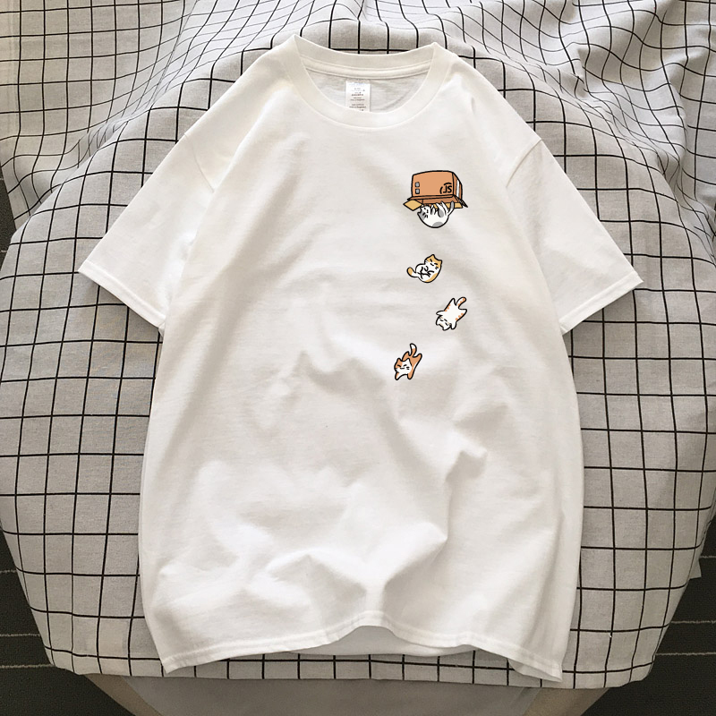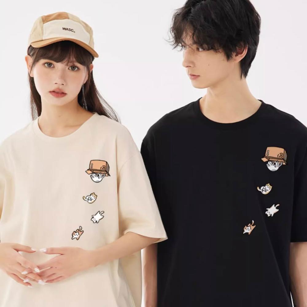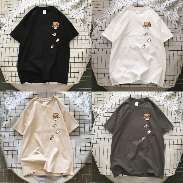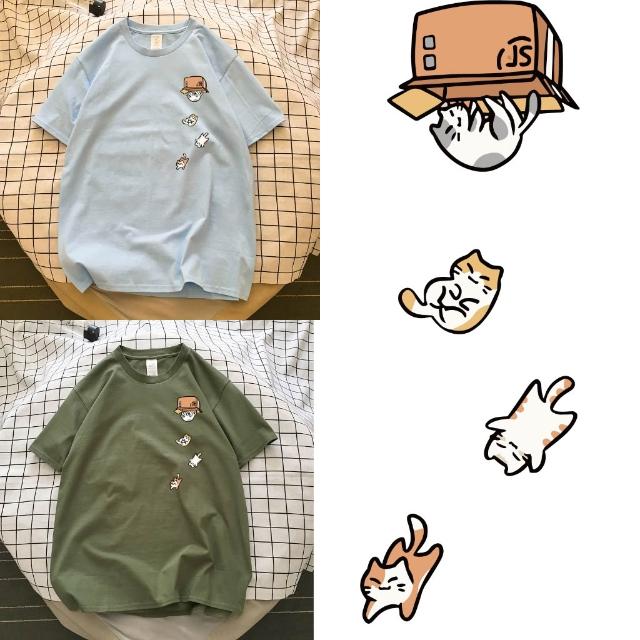 S~XL 左胸-貓從箱子掉出來 純棉 短T 情侶T【Y1116】MIT 情侶裝 短袖T恤 班服 加大尺碼 文青系 可單買