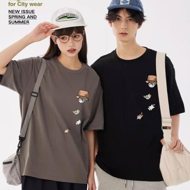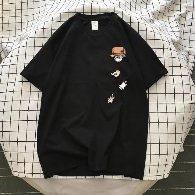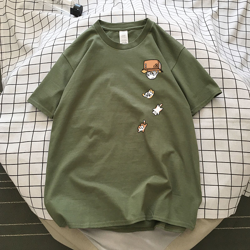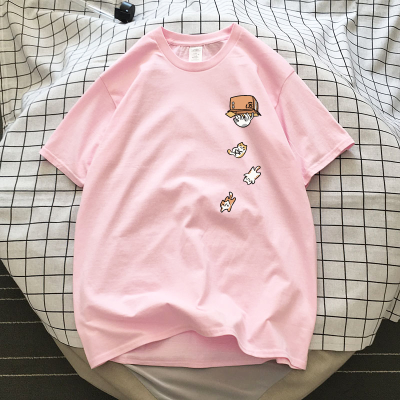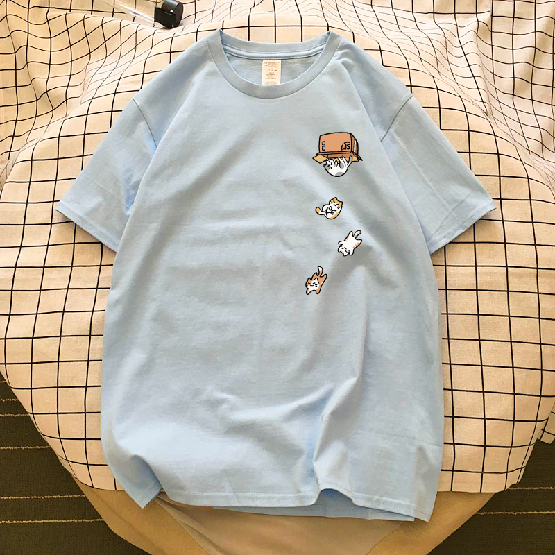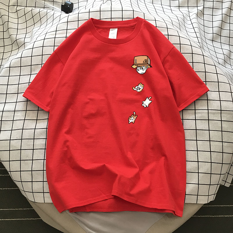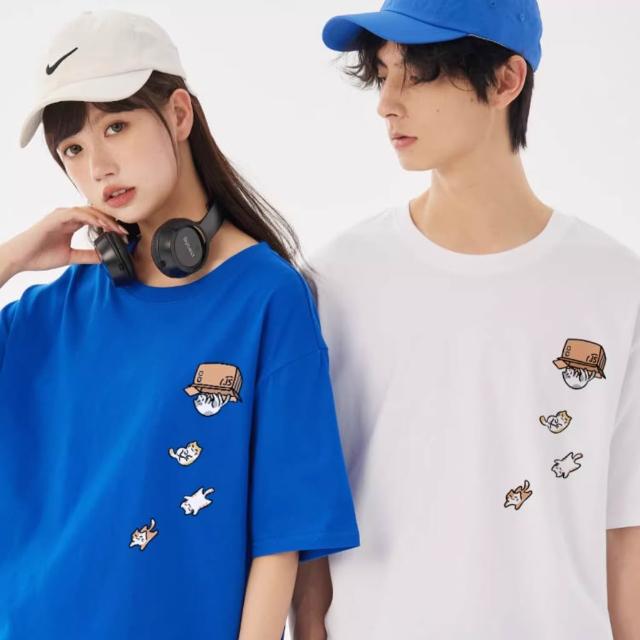 S~XL 左胸-貓從箱子掉出來 純棉 短T 情侶T【Y1116】MIT 情侶裝 短袖T恤 班服 加大尺碼 文青系 可單買