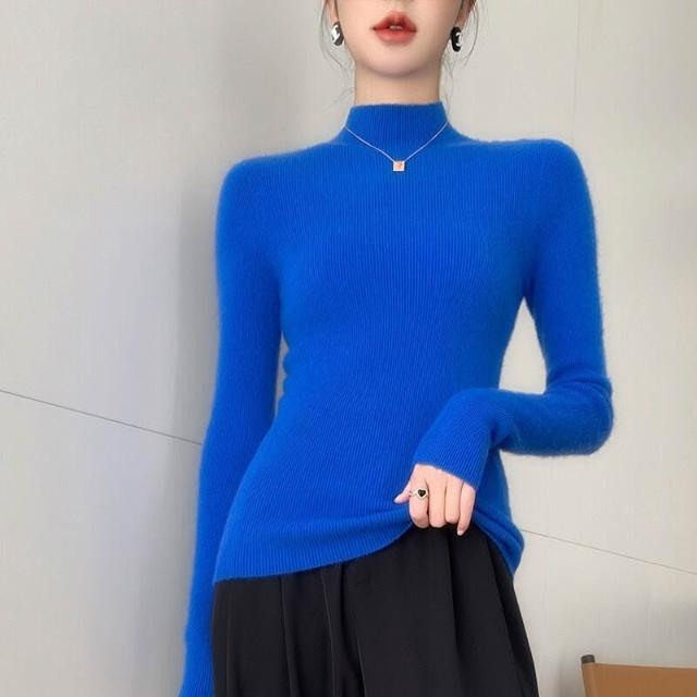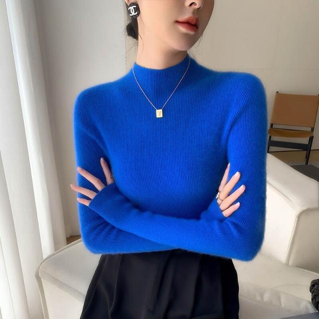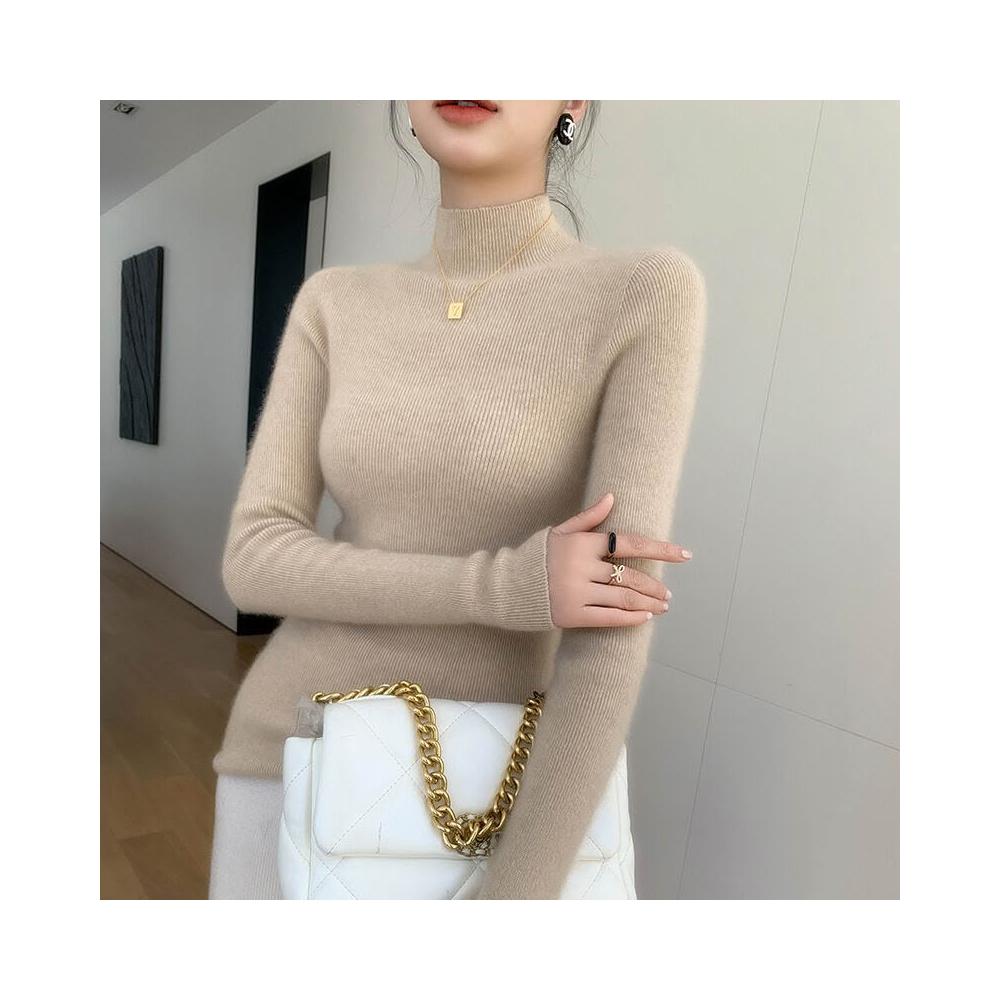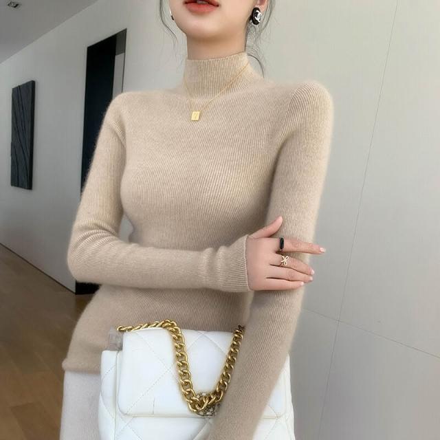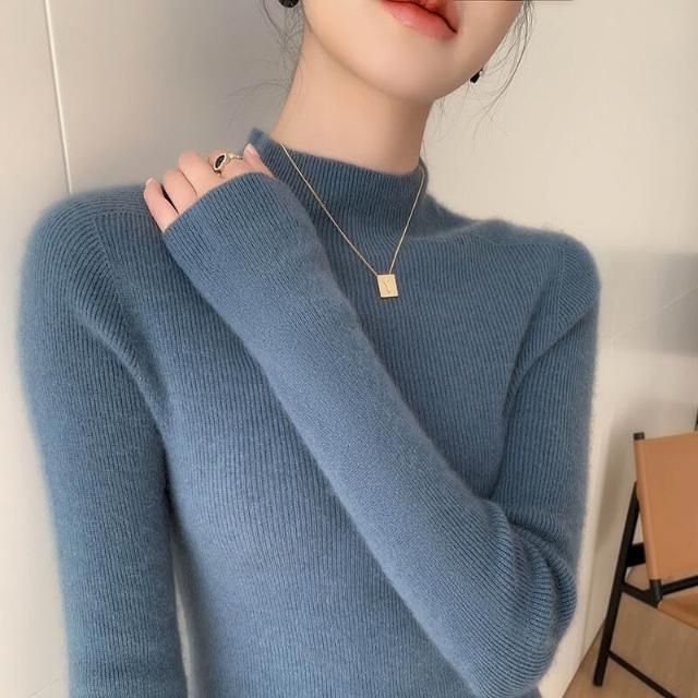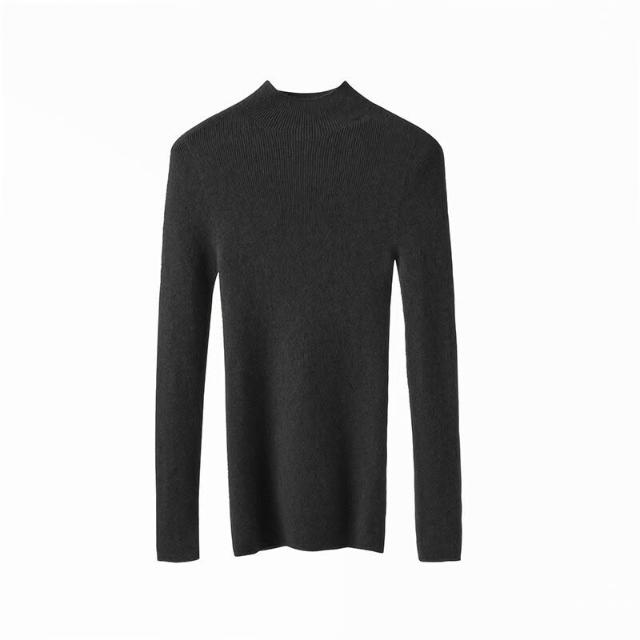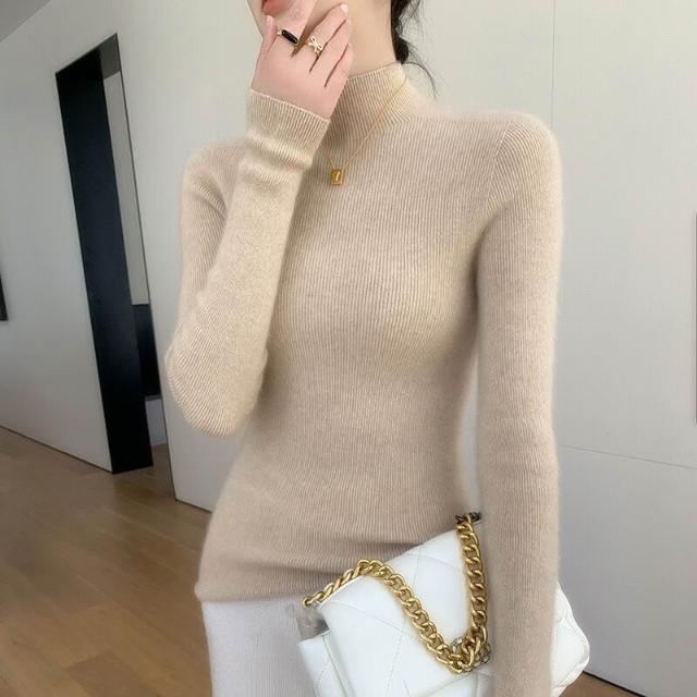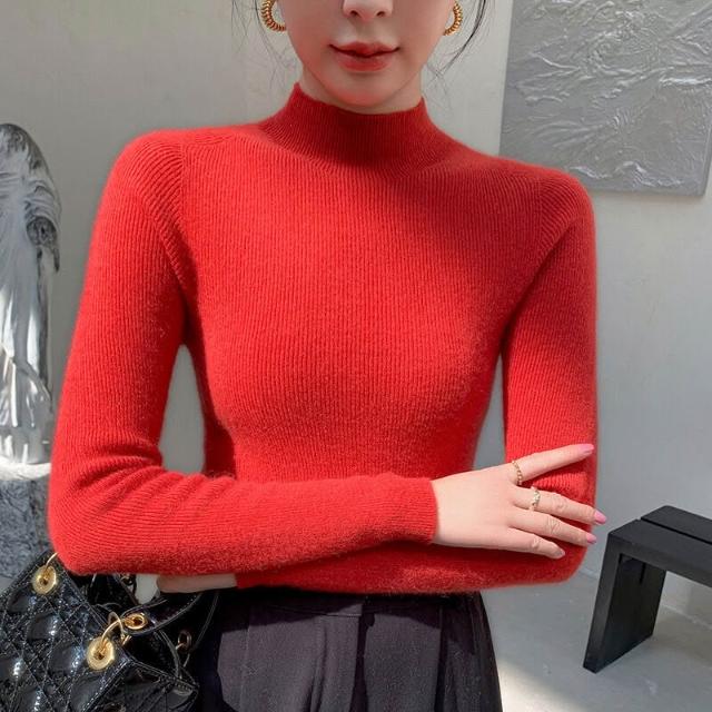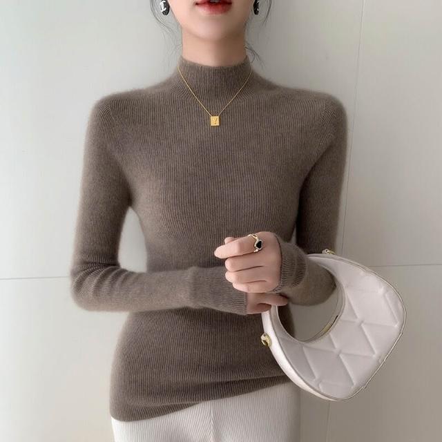 含税 秋冬羊絨針織衫女新款半高領修身羊絨衫內搭打底毛衣早秋上衣