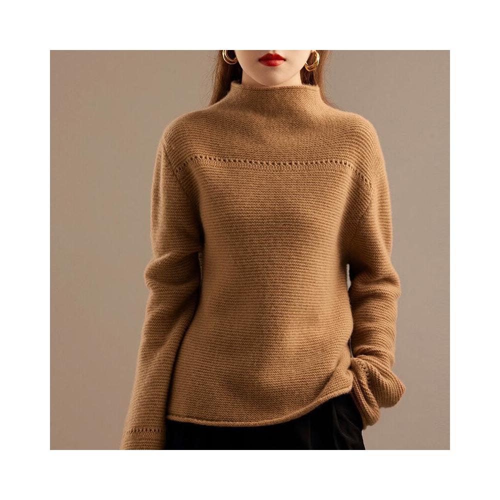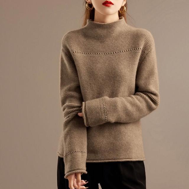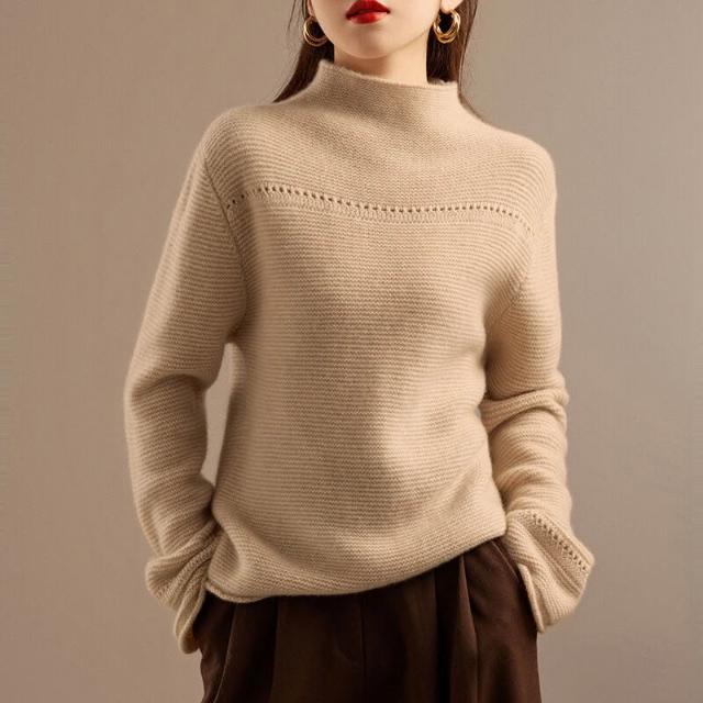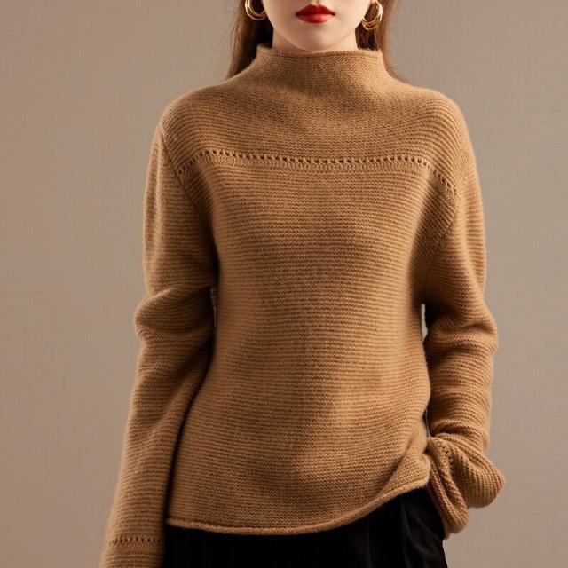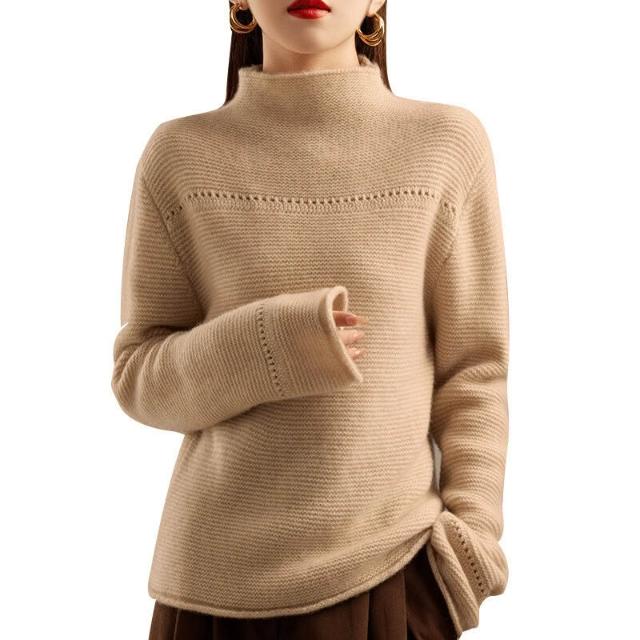 含税 2025秋季時尚高貨羊絨衫潮流簡約镂空顯瘦針織毛衣半高領羊絨衫