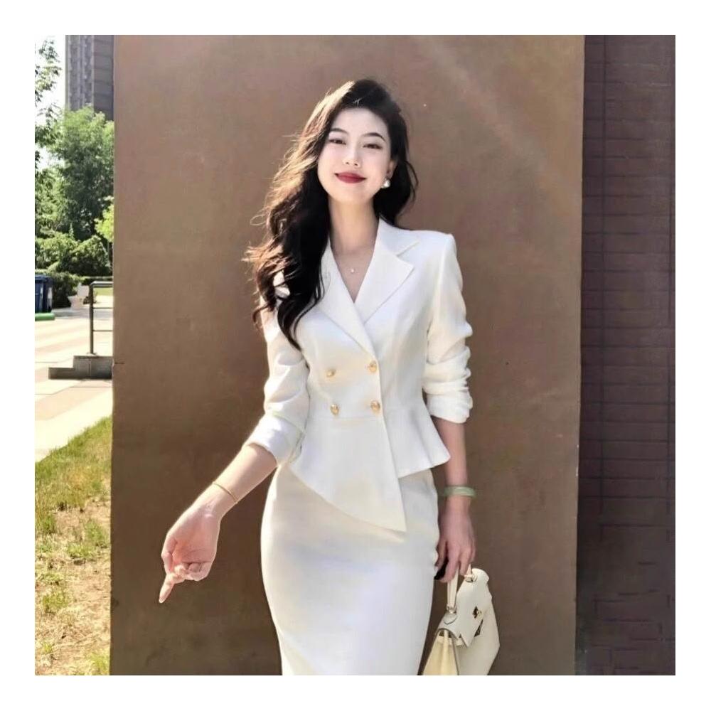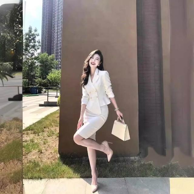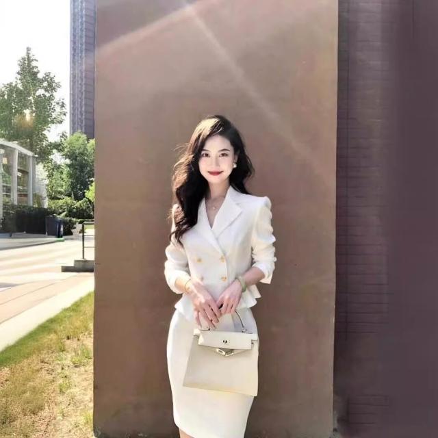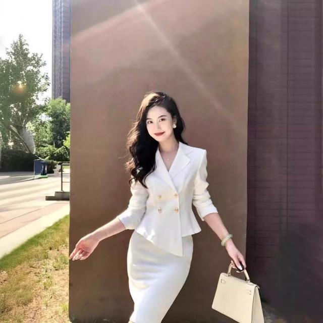 含税 春秋白色高級感西裝裙職業正裝氣質女神範a字半身裙套裝兩件套女