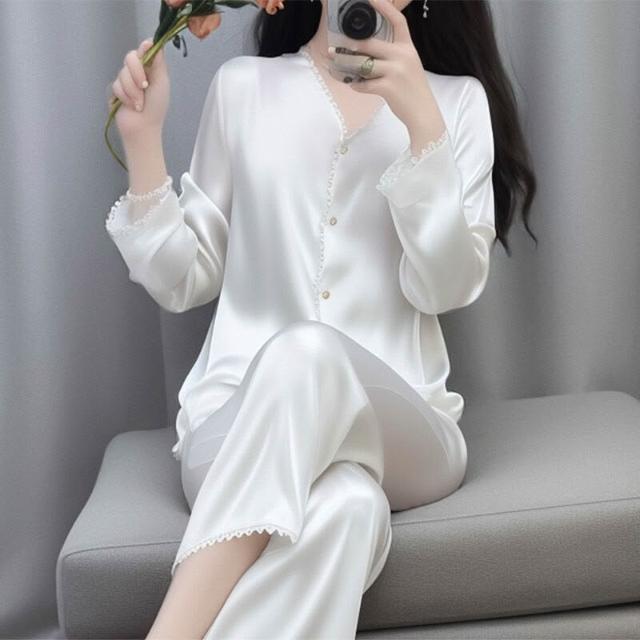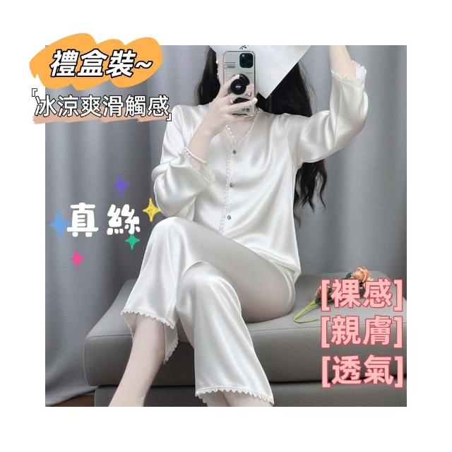 Cat Kite真絲睡衣 女春秋長袖 桑蠶絲 送閨蜜禮物 家居服 禮盒裝家居服