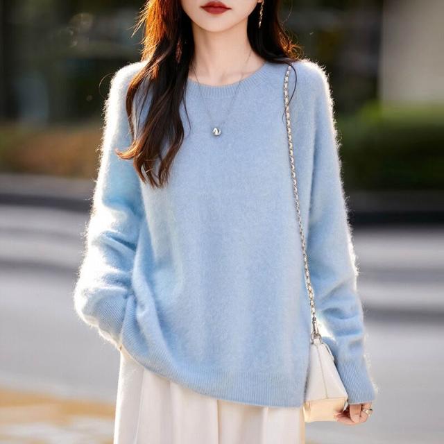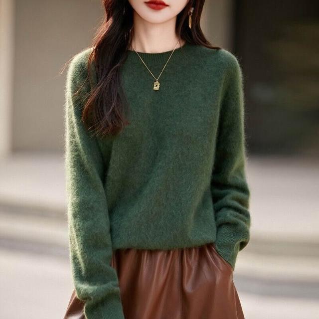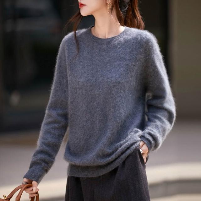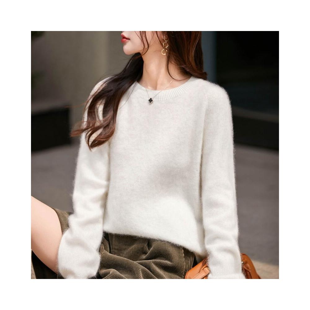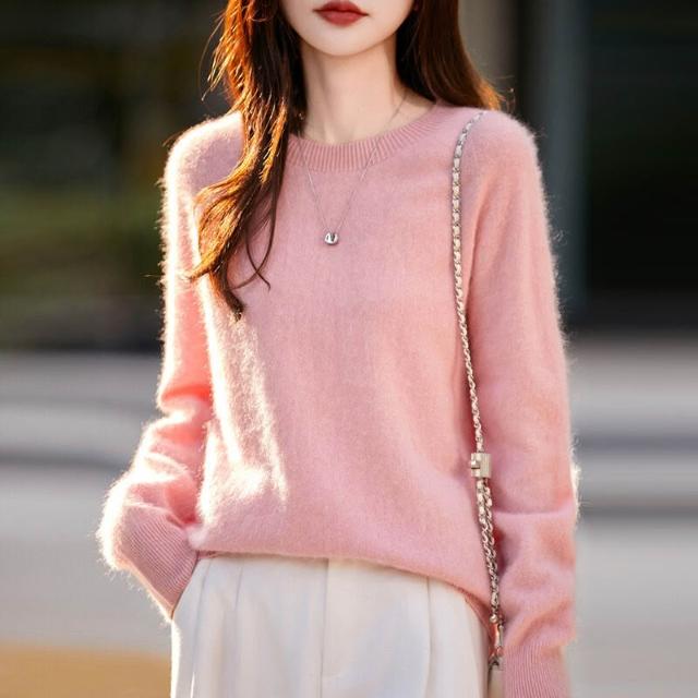 秋冬新款山羊絨羊毛混紡針織毛衣無縫一體女士圓領拉絨打底衫