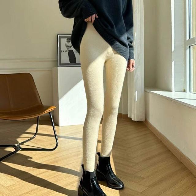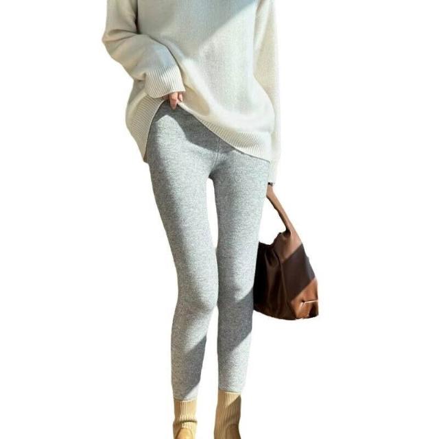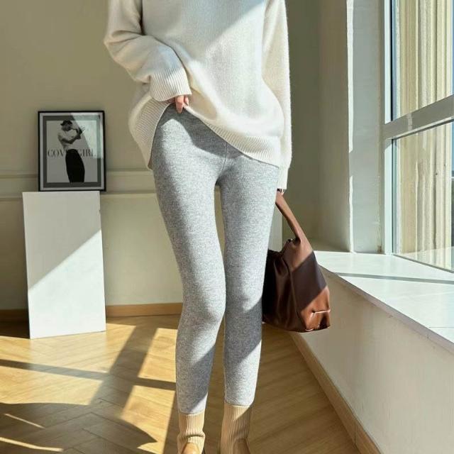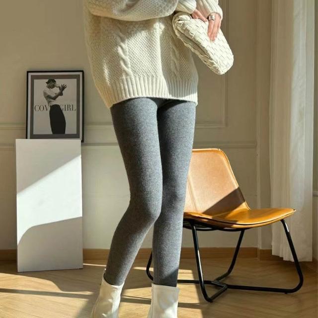 精紡羊毛打底褲女內搭外穿秋冬新款針織高腰修身保暖不紮抗起球