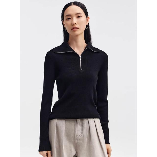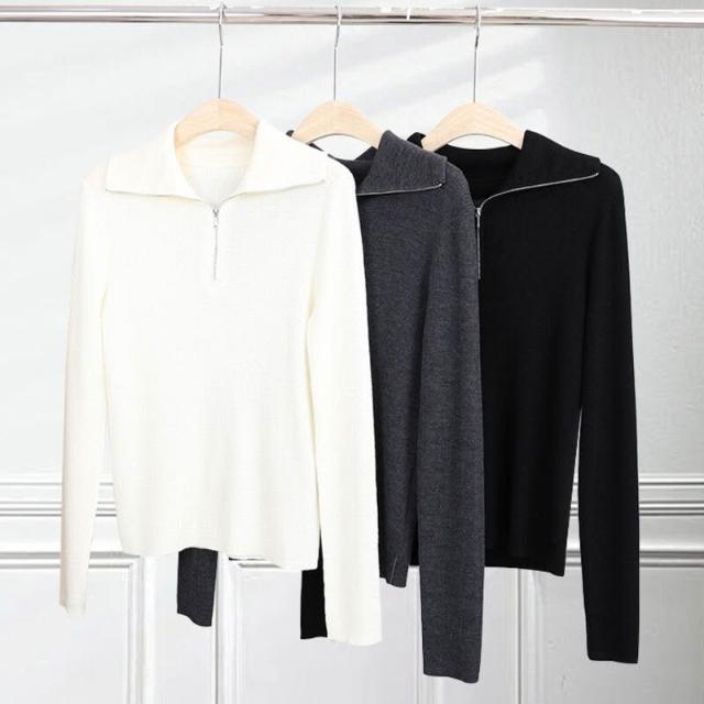 含税 揚子紗羊毛衫半拉鏈翻領針織衫坑條海軍領毛衣polo長袖上衣開衫秋