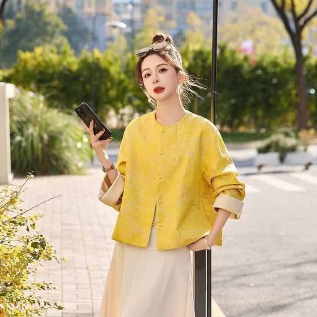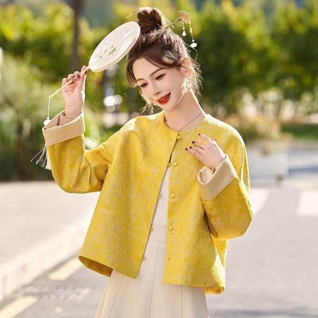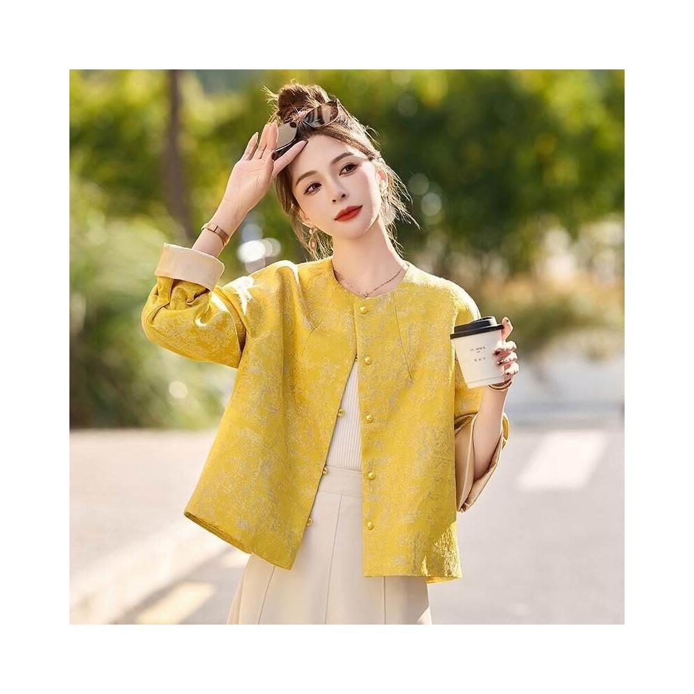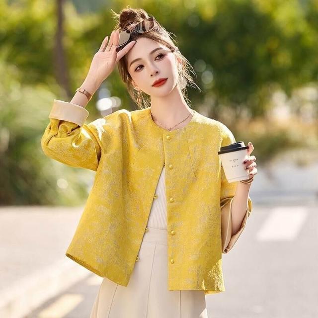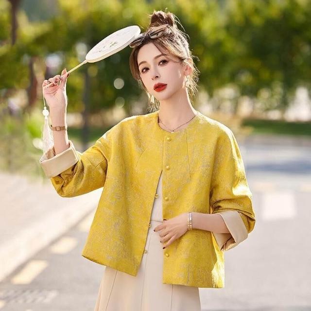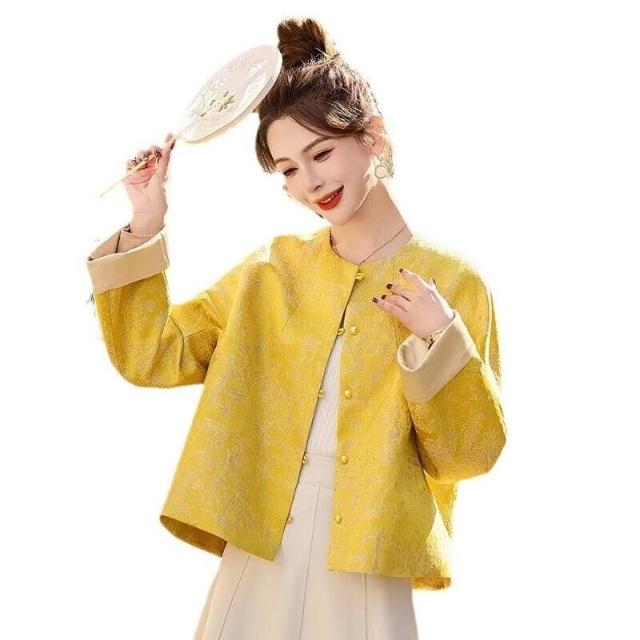 含税 新中式提花短外套女士2025秋季新款圓領寬松高端唐裝國風上衣