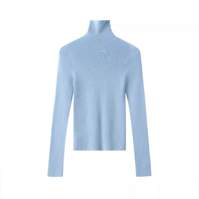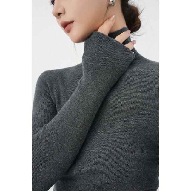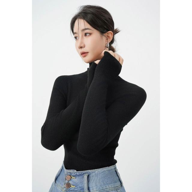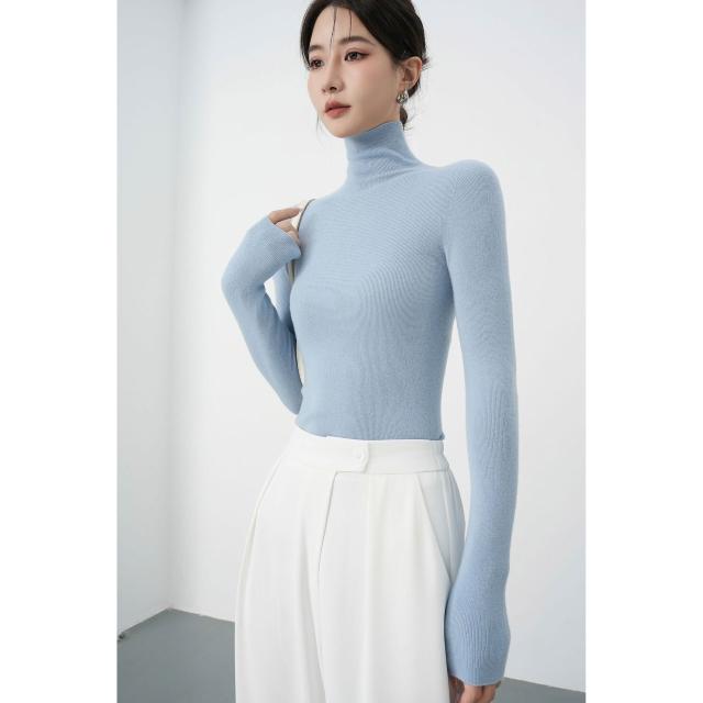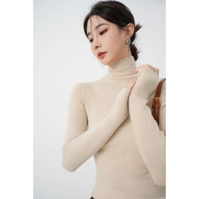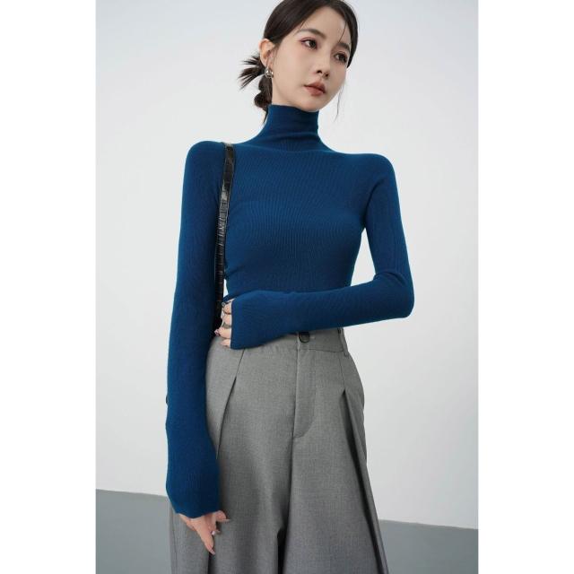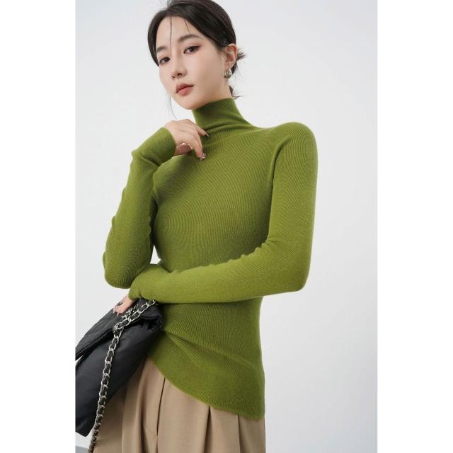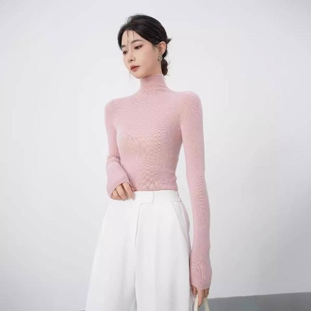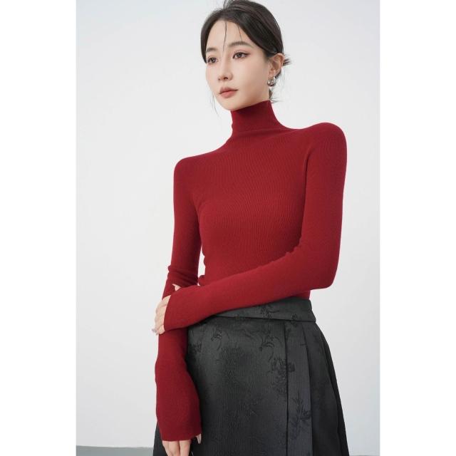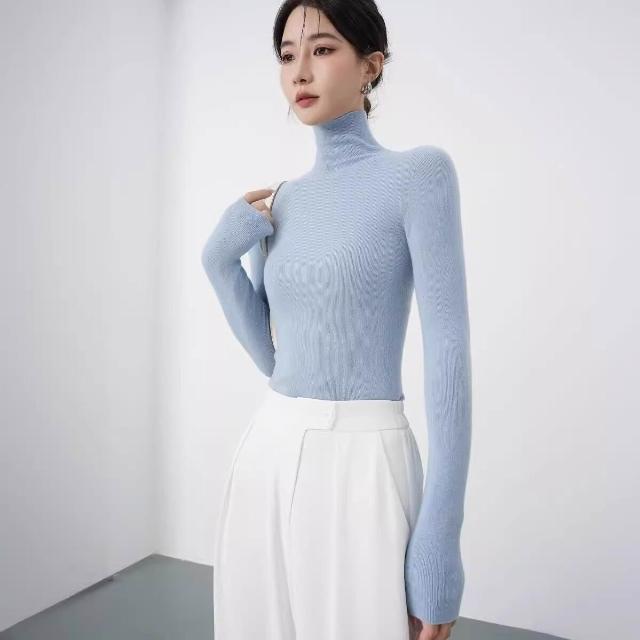 含税 秋冬法式無縫高領羊毛針織衫女高級感修身內搭打底毛衣軟糯上衣