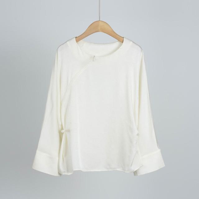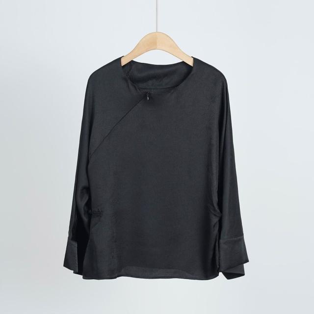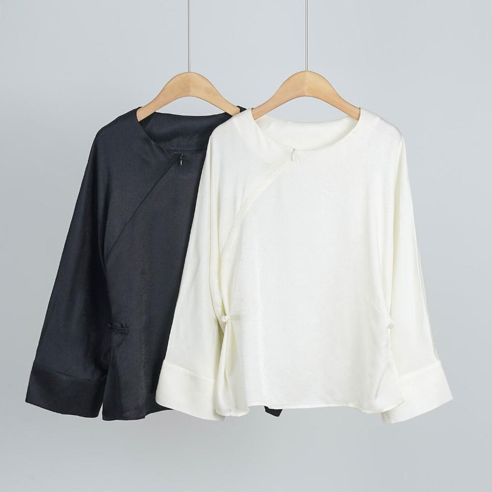 含税 新中式美學 100%桑蠶絲重緞暗紋提花中式國風手工盤扣長袖襯衫女
