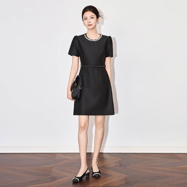 含税 2502703-深圳南油高級感精致重工鑲鉆名媛氣質收腰連衣裙女春夏新