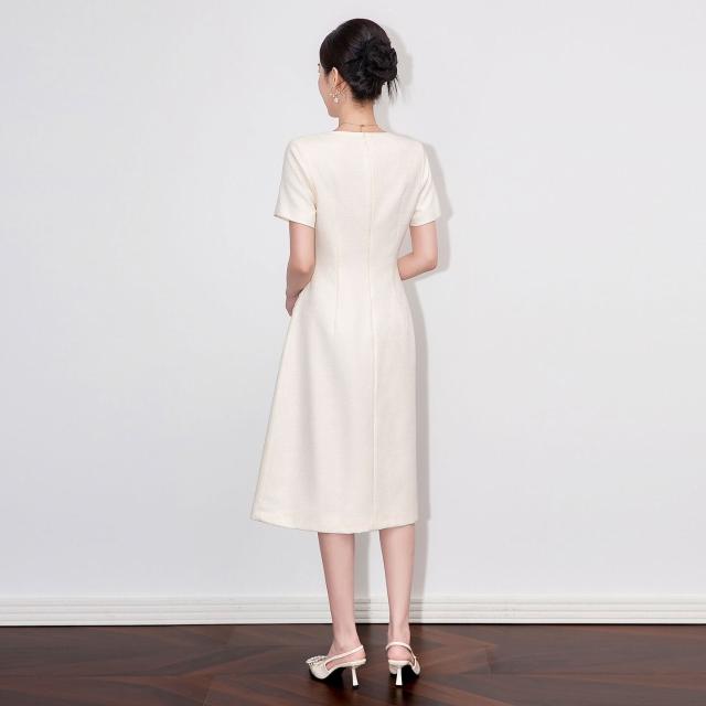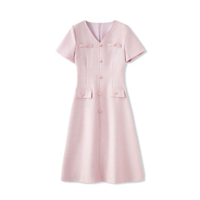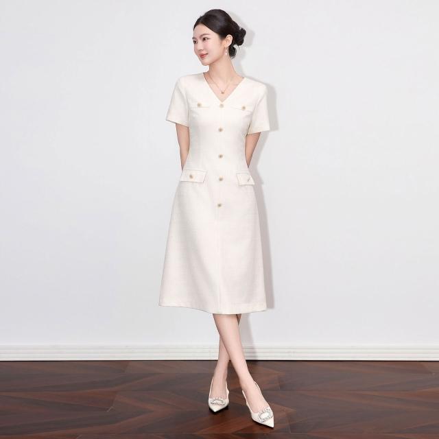 含税 2509610-高貨精致小香風洋氣修身V領裙子時髦短袖連衣裙南油女夏