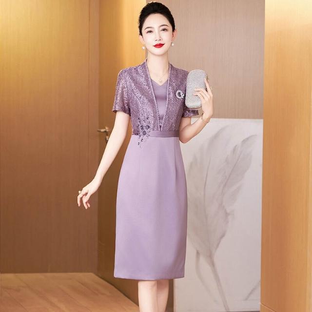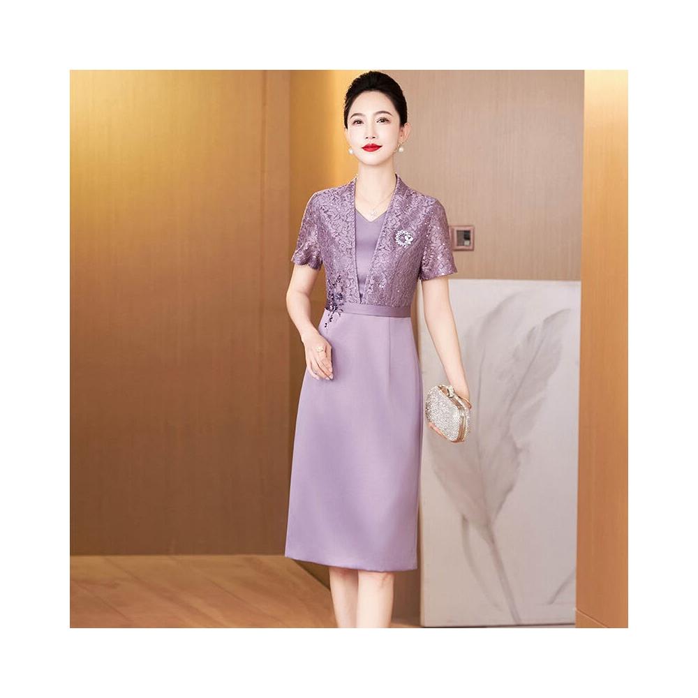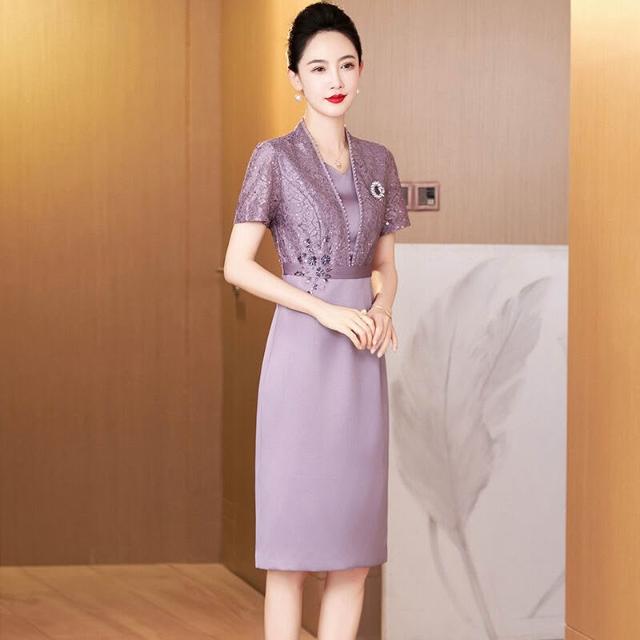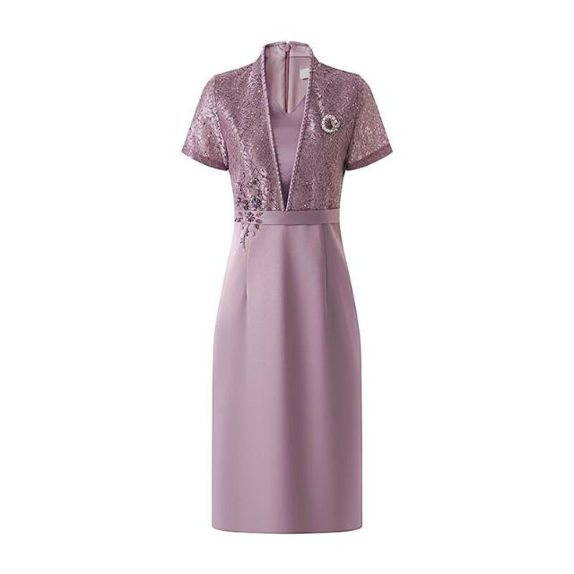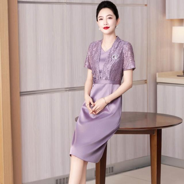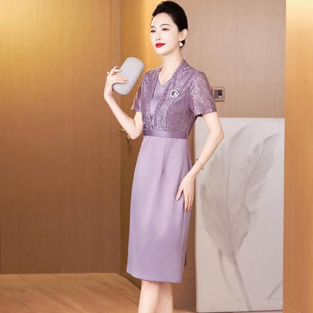含税 新中式蕾絲旗袍年輕款高端氣質媽媽婚宴禮服假兩件連衣裙平時可穿