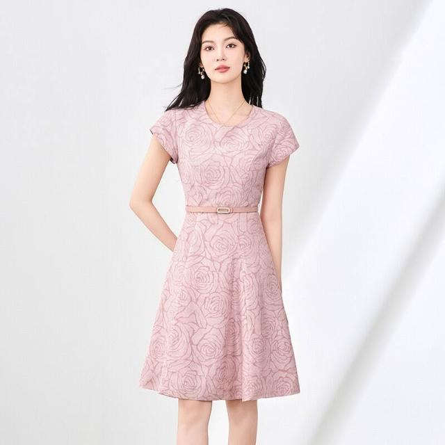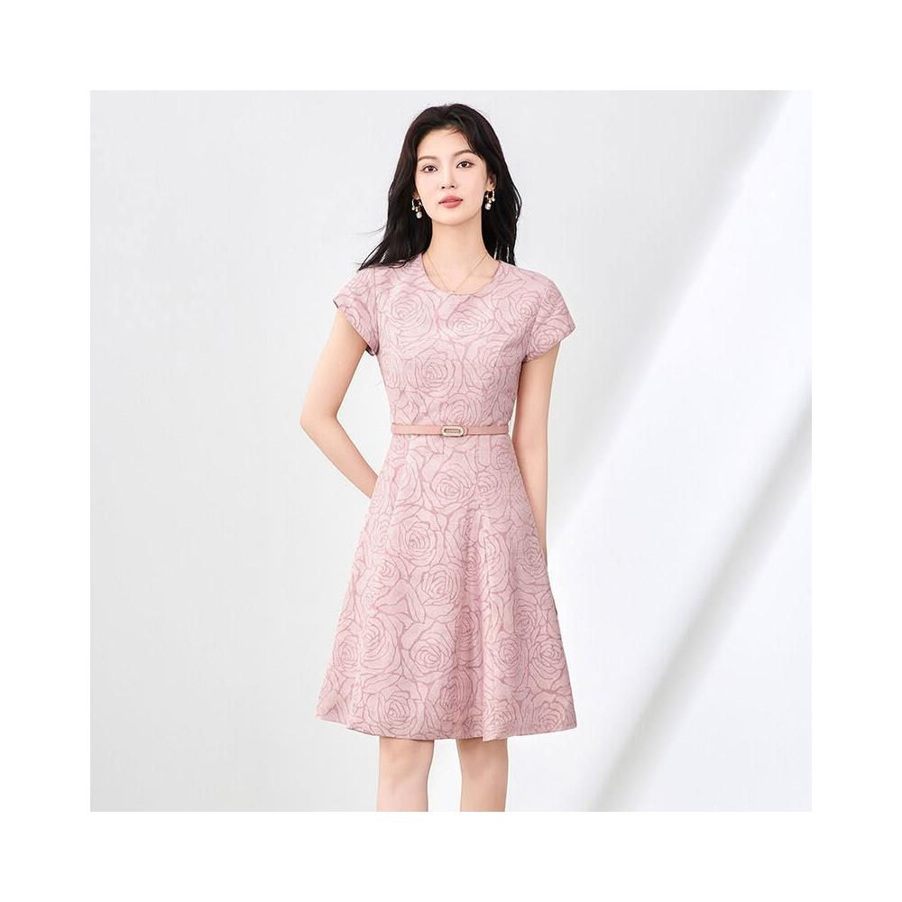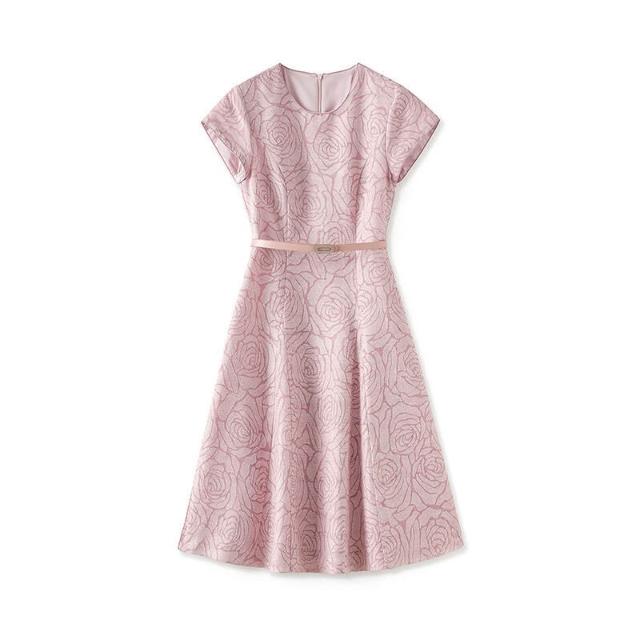 含税 2507303-南油法式輕奢時尚簡約玫瑰提花氣質連衣裙女收腰顯瘦通勤