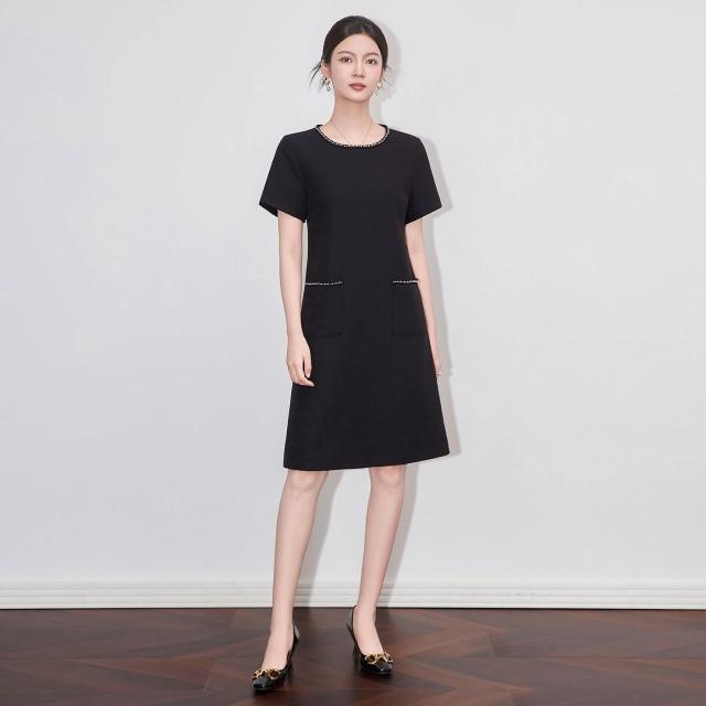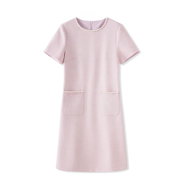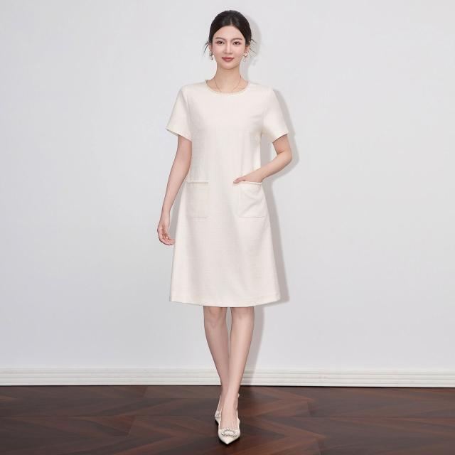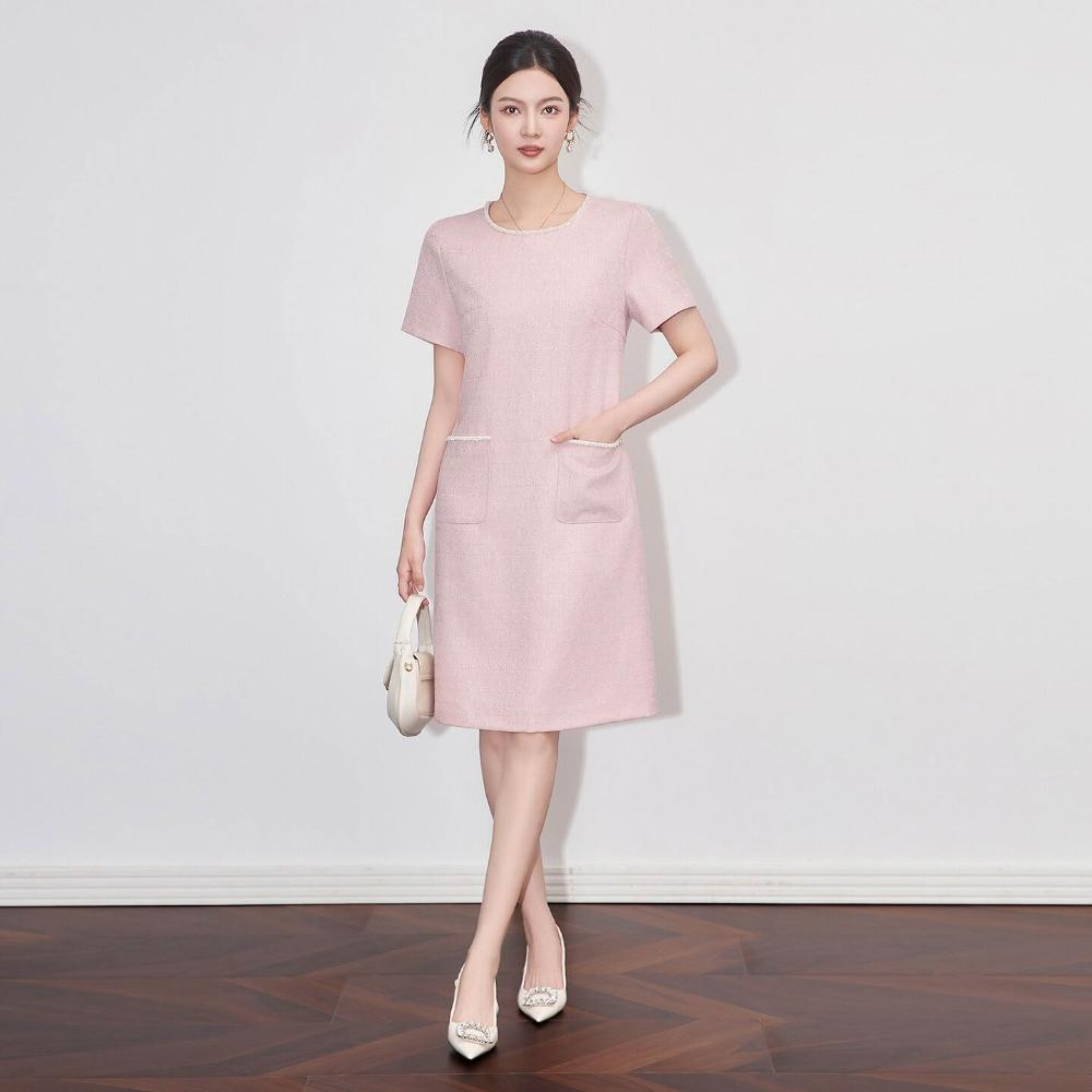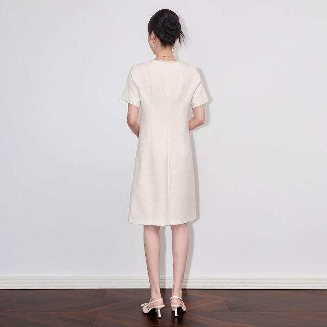 含税 2509609-小香風法式氣質裙子提花編織圓領修身短袖連衣裙南油女夏