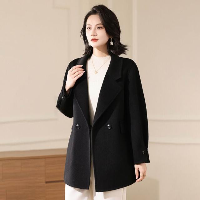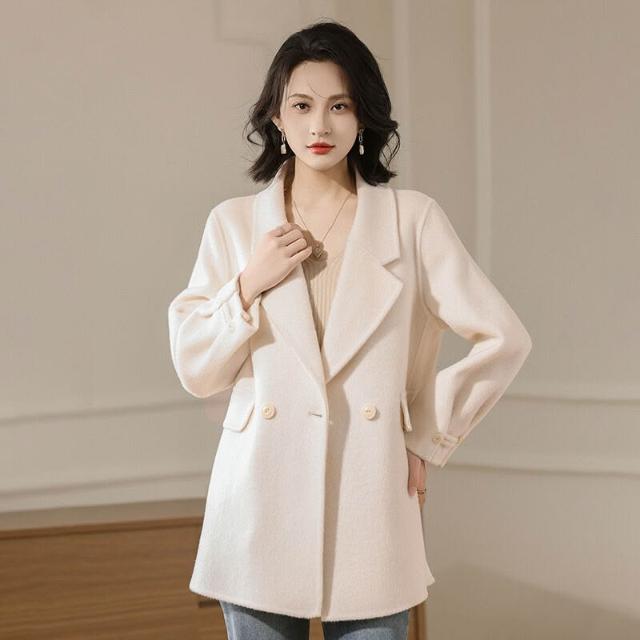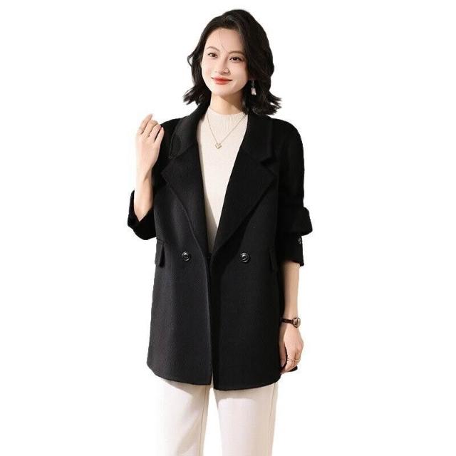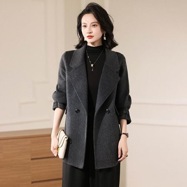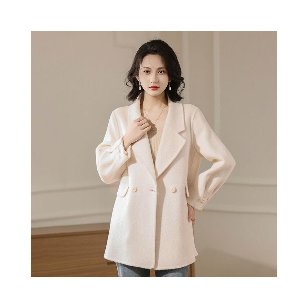 含税 奢感升級牦牛絨羊毛混紡大衣女秋冬雙排扣西裝領中長款毛呢外套女