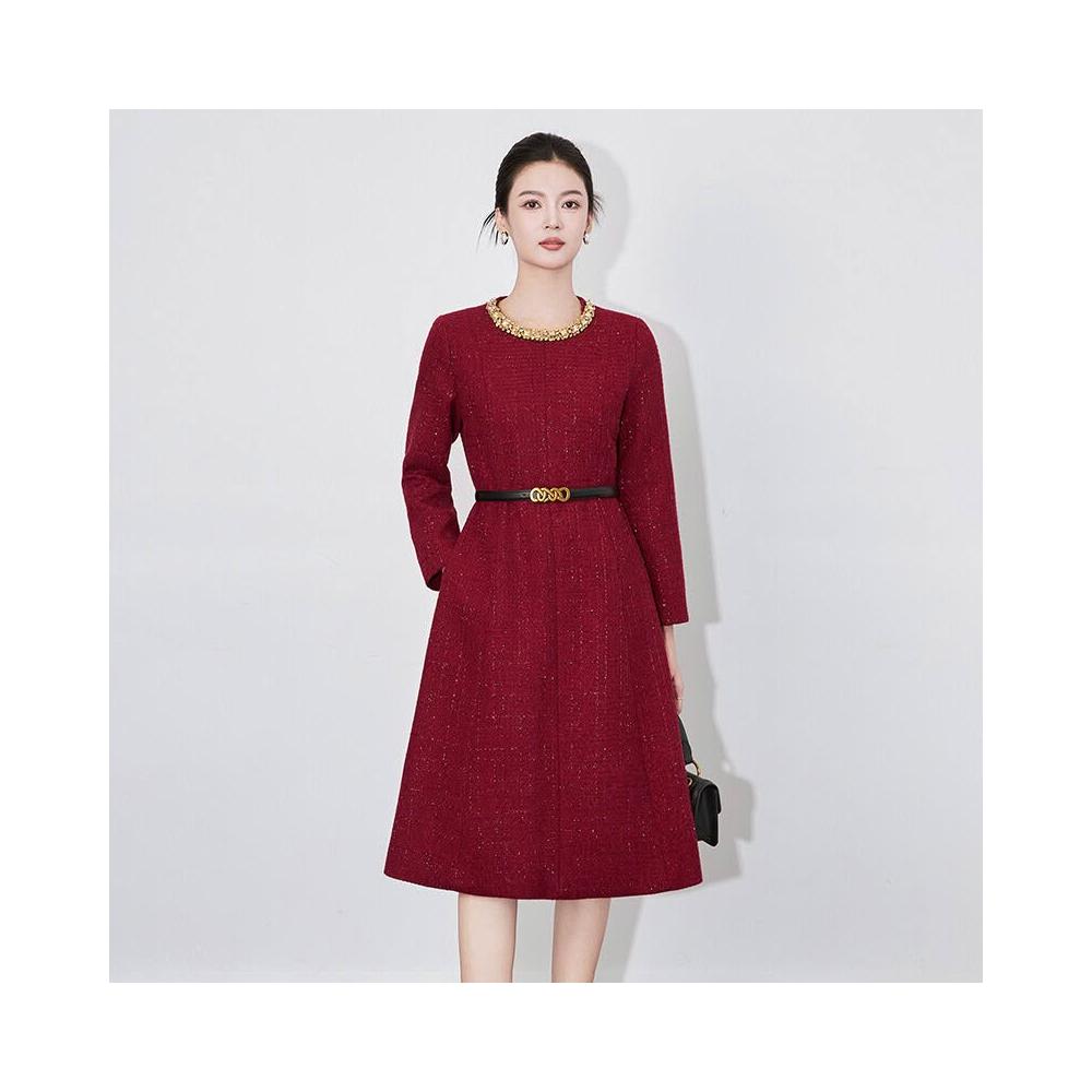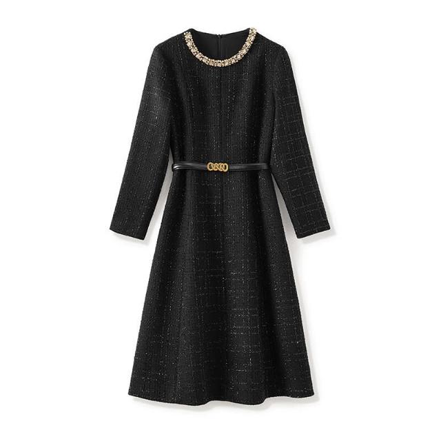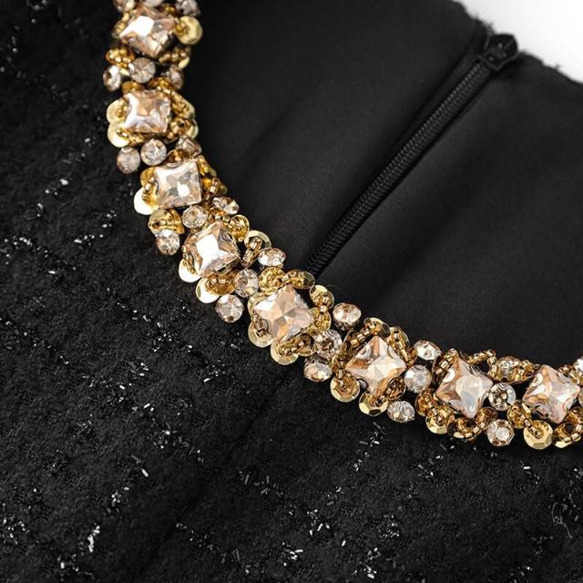 含税 2433711-深圳南油小香風重工圓領金鉆亮絲時尚洋氣連衣裙女秋冬款