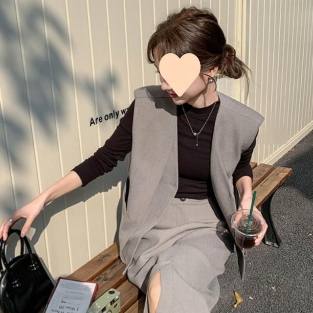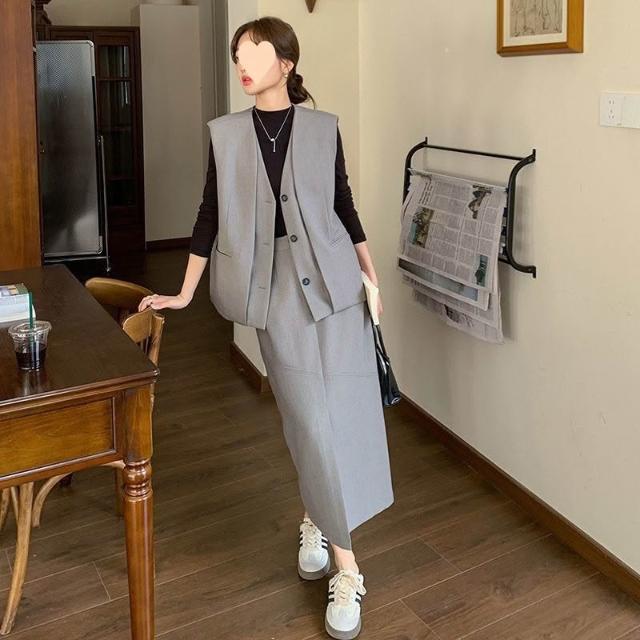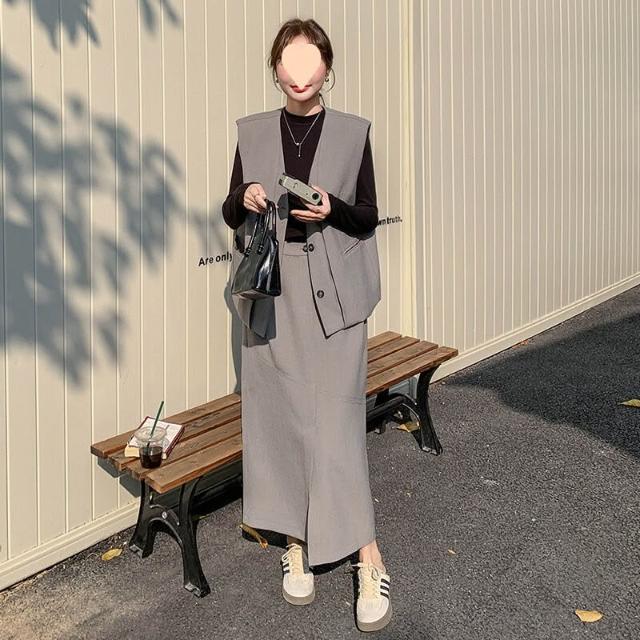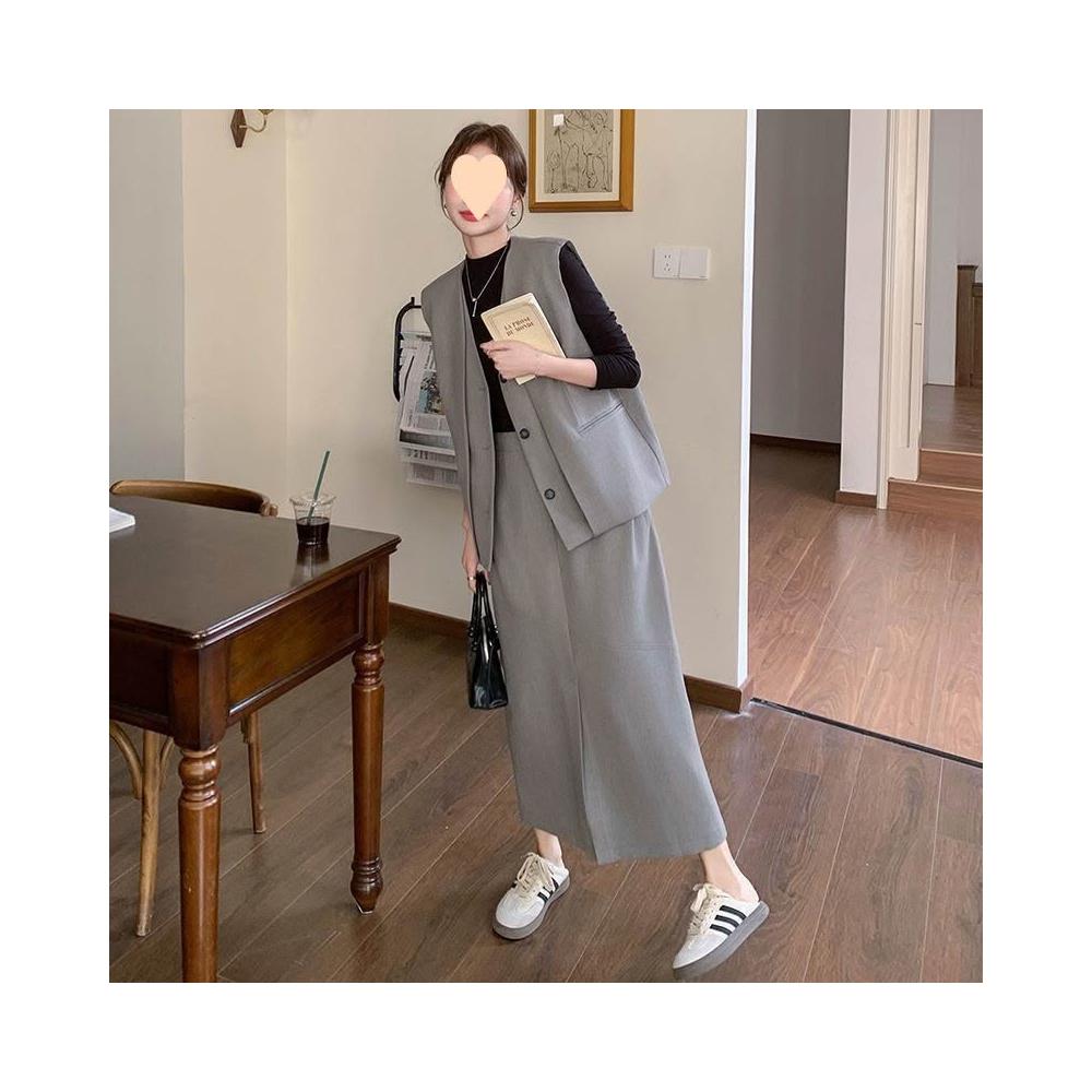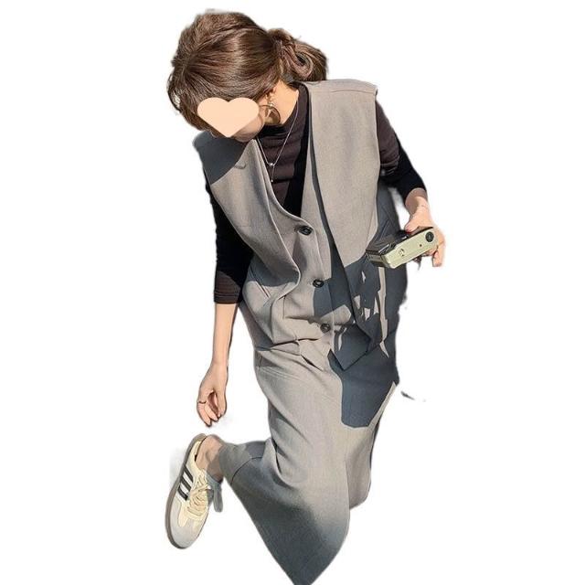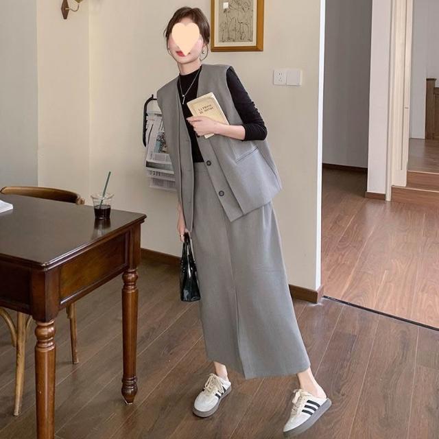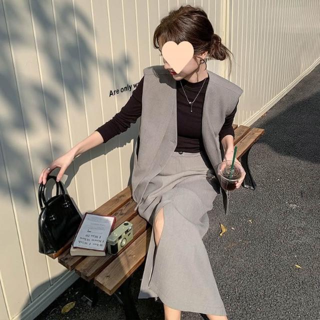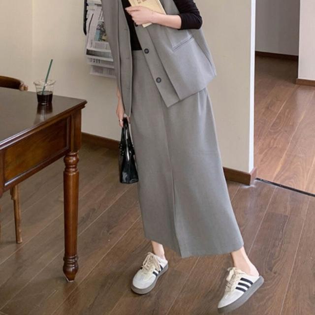 含税 灰色2025春新西裝氣質馬甲裙女半身裙套裝時尚高級職業新款兩件套