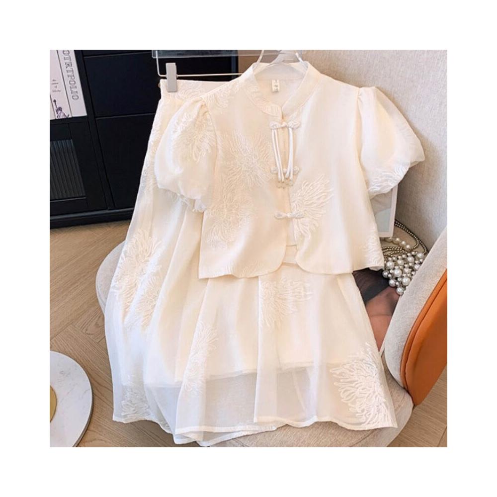 含税 大碼女裝新中式國風改良旗袍夏季女裝高級感短款上衣半身裙套裝女