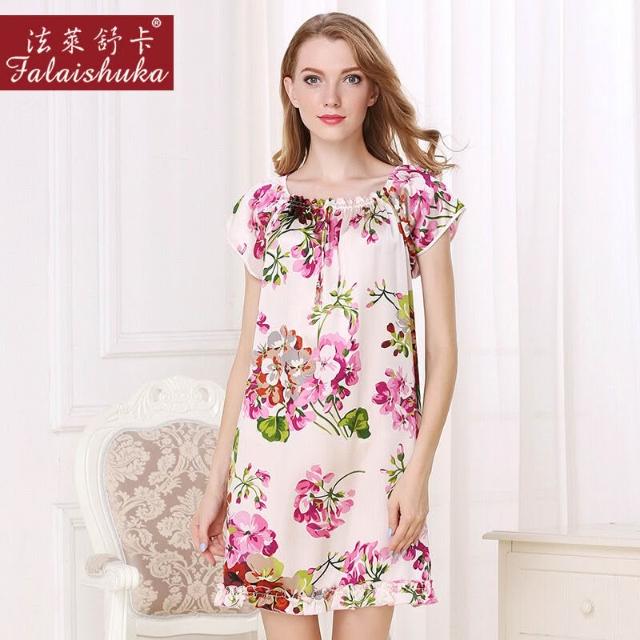 含税 真絲睡衣女夏短袖100%桑蠶絲睡裙中裙大碼寬松絲綢家居服S2509