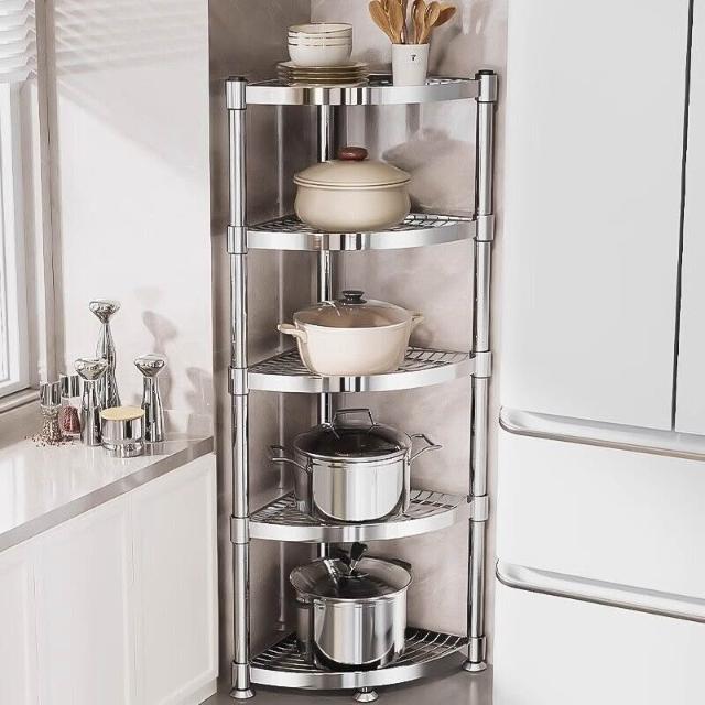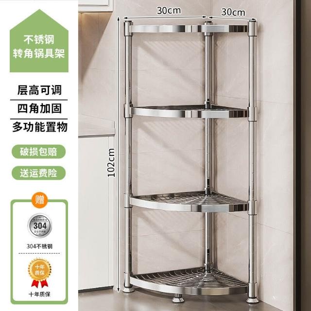 304不銹鋼廚房轉角置物架多功能三腳架墻角收納架浴室三角鍋具架