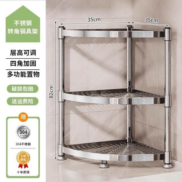 304不銹鋼廚房轉角置物架多功能三腳架墻角收納架浴室三角鍋具架