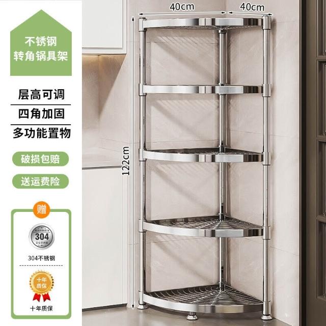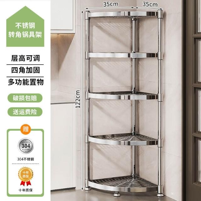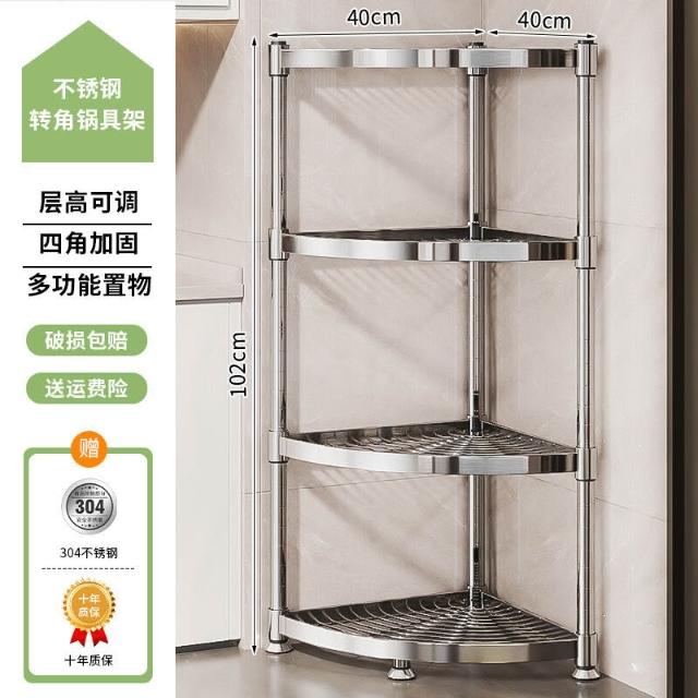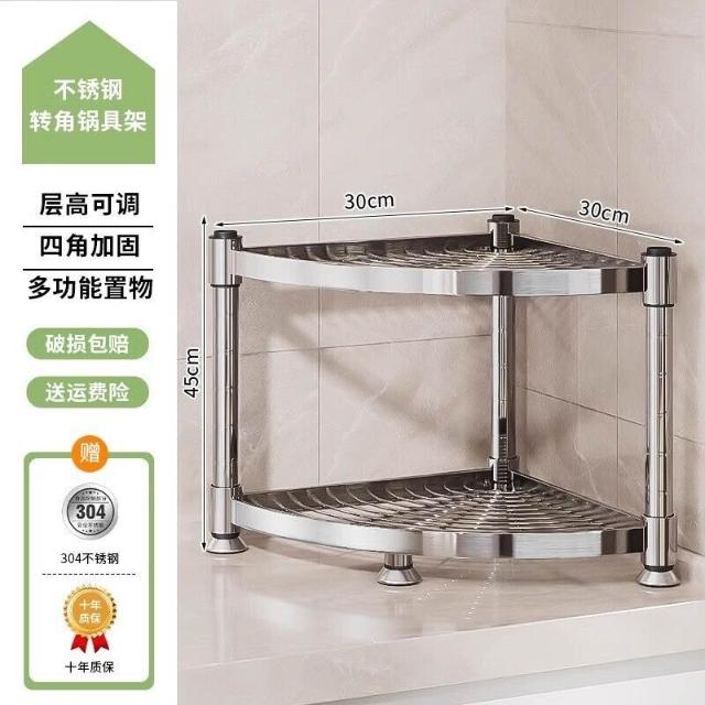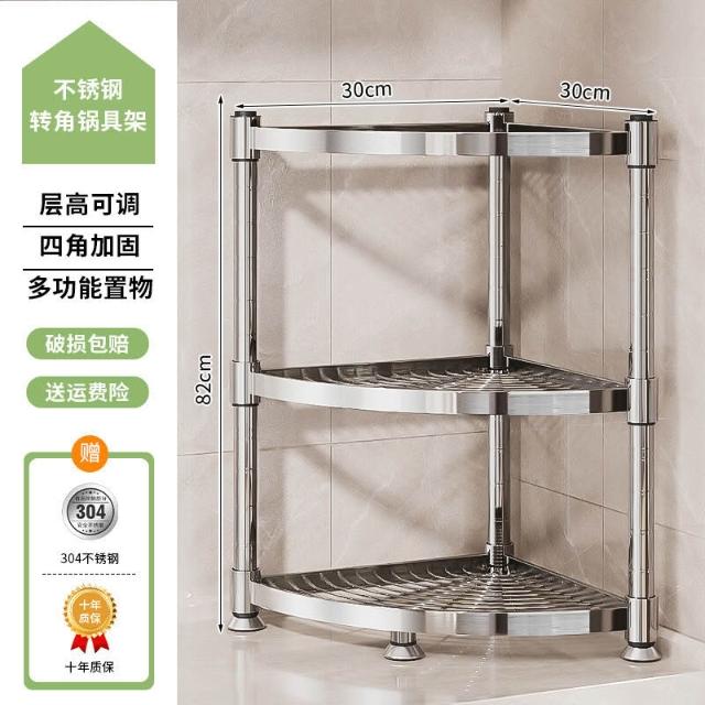 304不銹鋼廚房轉角置物架多功能三腳架墻角收納架浴室三角鍋具架
