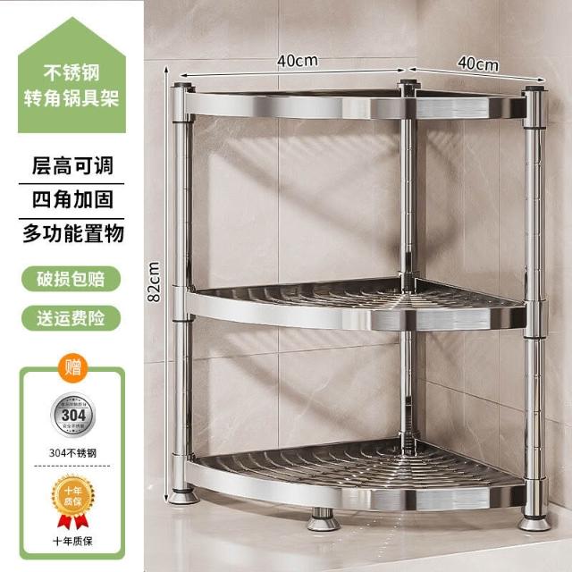 304不銹鋼廚房轉角置物架多功能三腳架墻角收納架浴室三角鍋具架