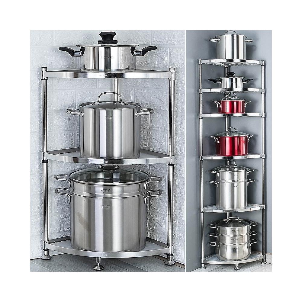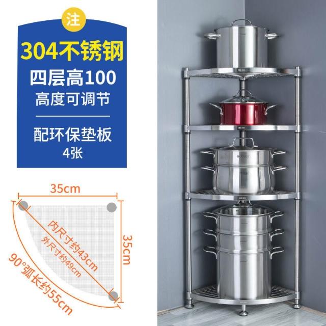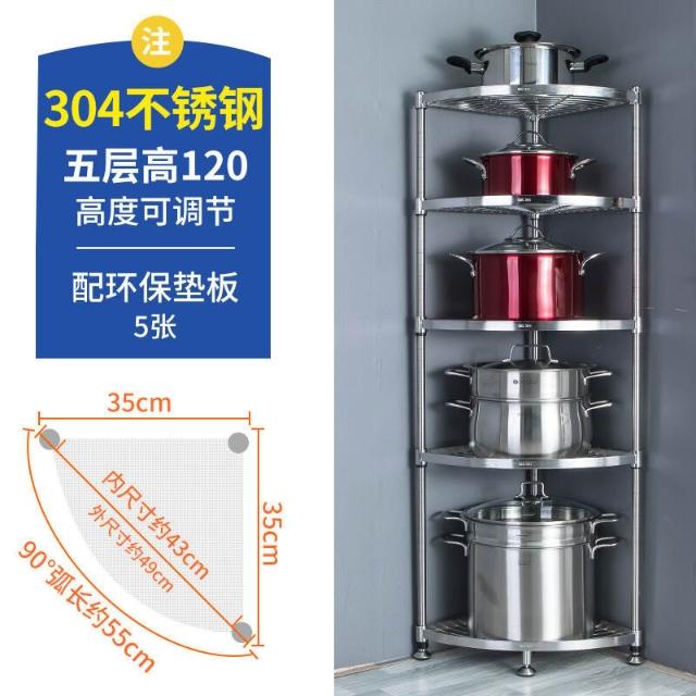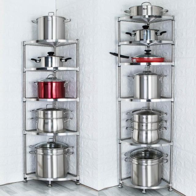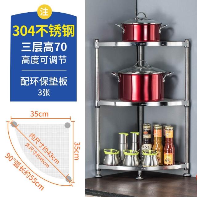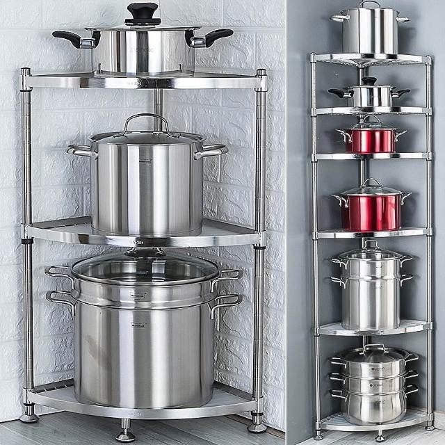 廚房角落置物架三角不銹鋼落地轉角收納架多功能放鍋架子家用多層