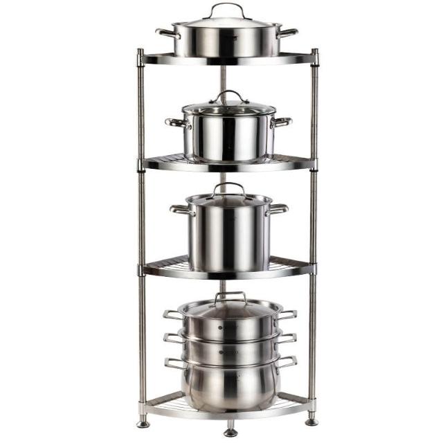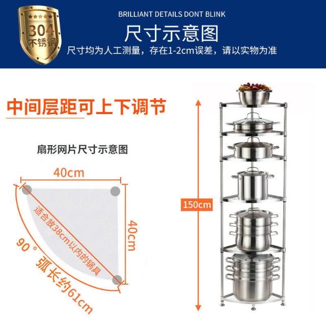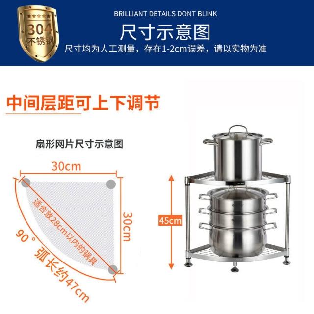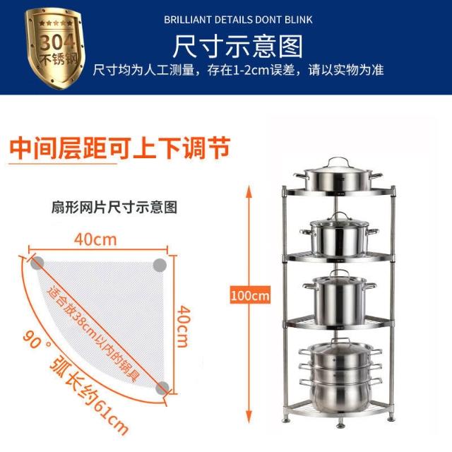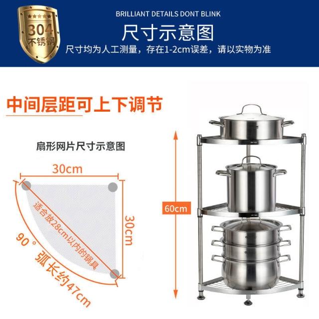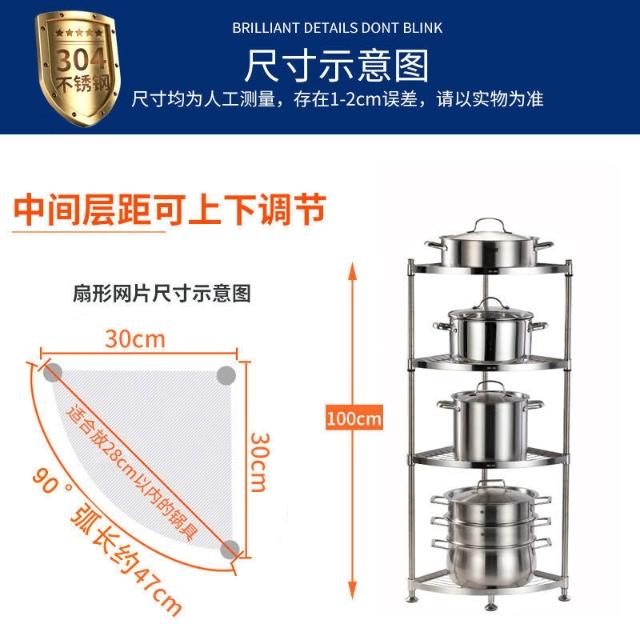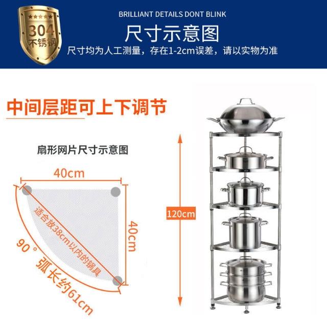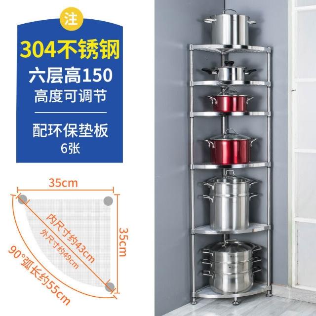 廚房角落置物架三角不銹鋼落地轉角收納架多功能放鍋架子家用多層