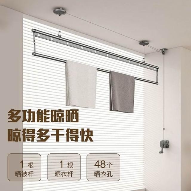 小戶型晾衣架桿被家用曬長桿升降式晾衣架陽臺單桿單排手搖式晾衣