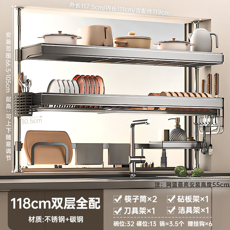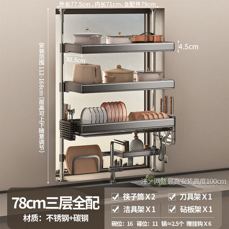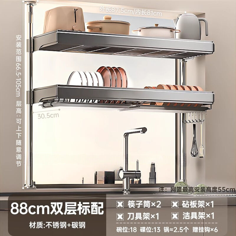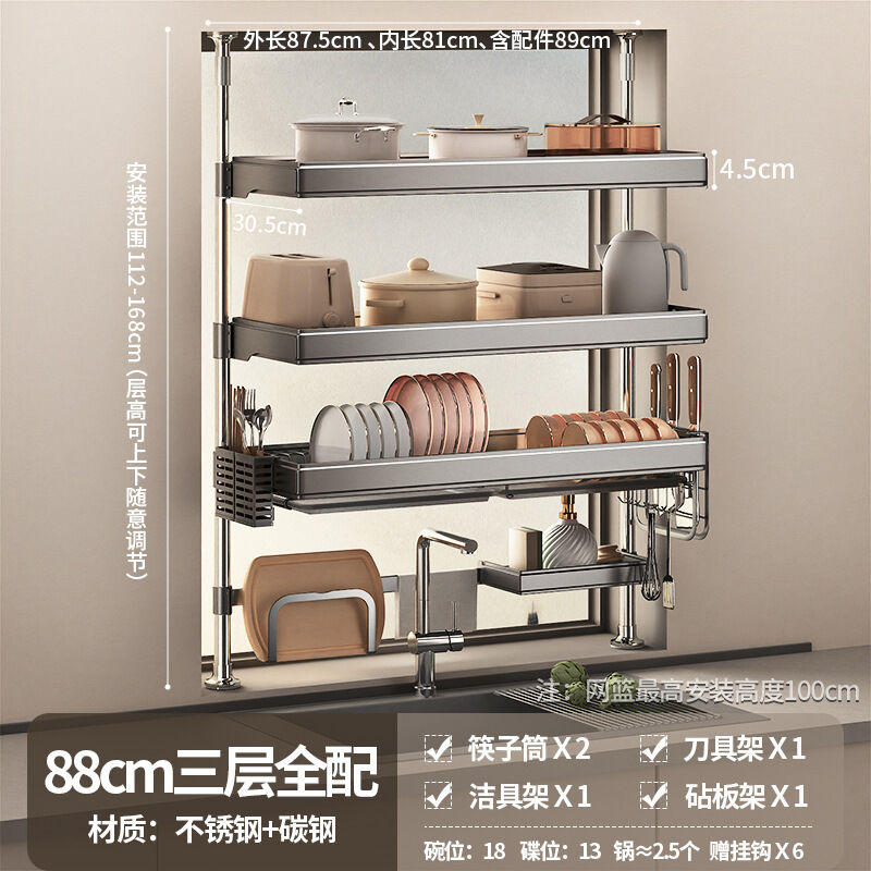 頂天立地多功能廚房置物架 收納架 水槽碗架 碗碟收納架 瀝水架 洗碗槽 水池置物架