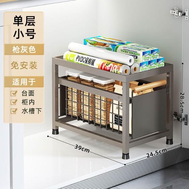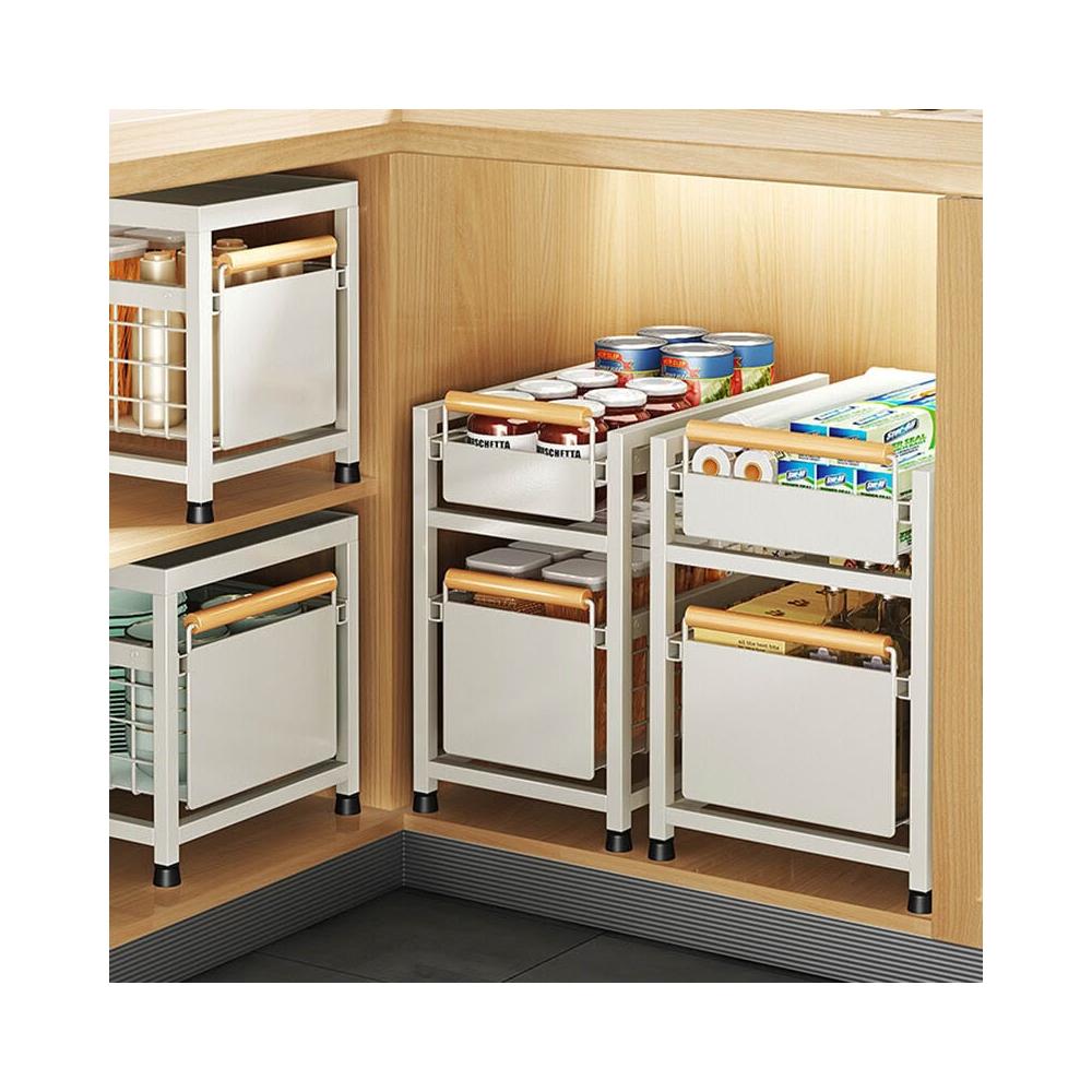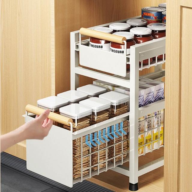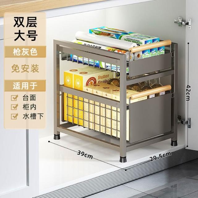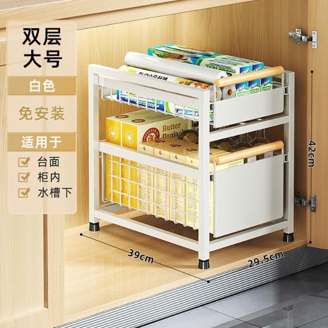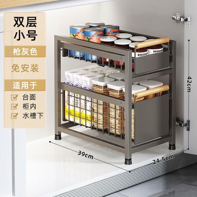 櫥櫃置物架廚房下水槽置物架多功能碗碟調料收納抽拉式分層整理架
