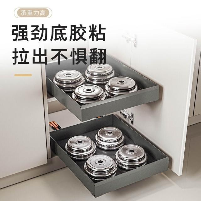 櫥櫃拉籃抽屜式免打孔底部抽拉滑軌收納廚房櫃內碗碟盤調料置物架