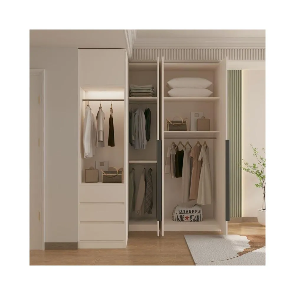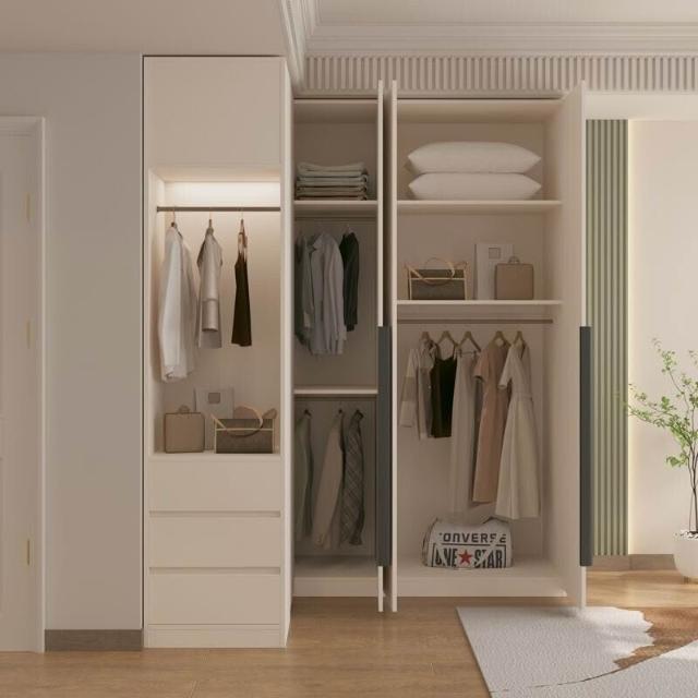 L型轉角衣櫃梳妝臺一體 家用臥室一門到頂 小戶型奶油風拐角衣櫥