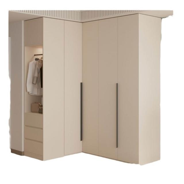 L型轉角衣櫃梳妝臺一體 家用臥室一門到頂 小戶型奶油風拐角衣櫥