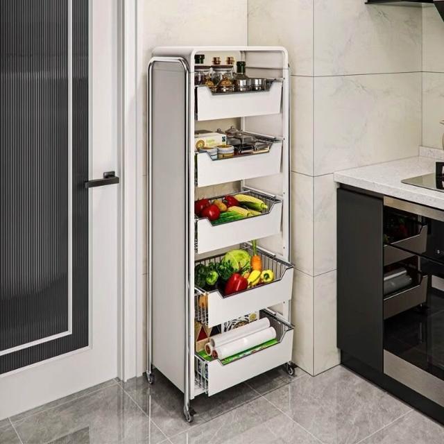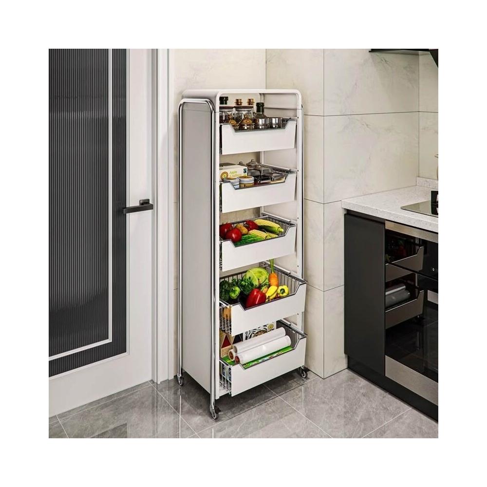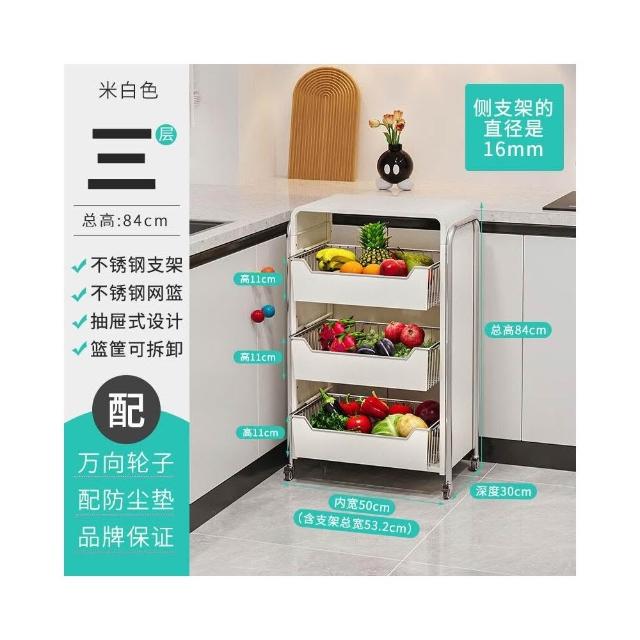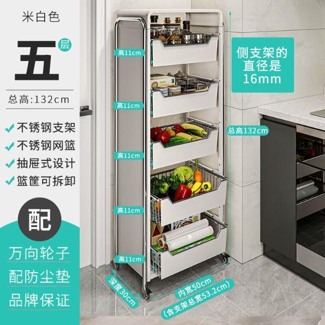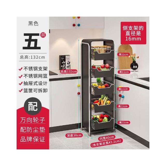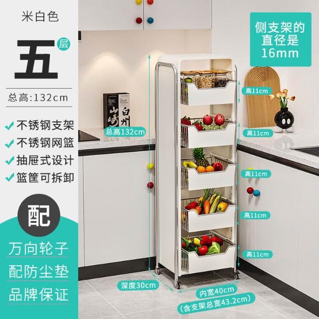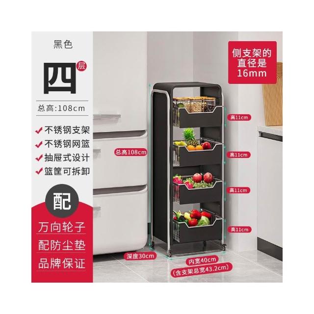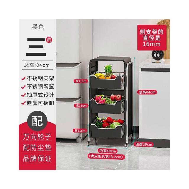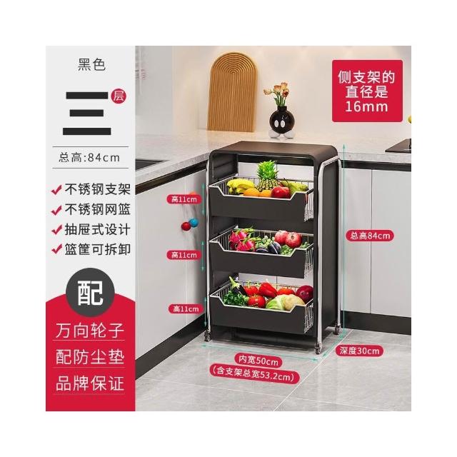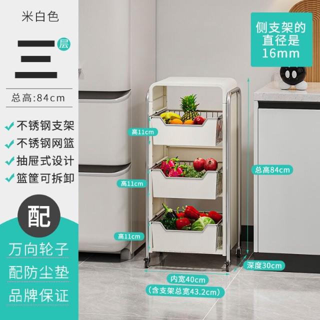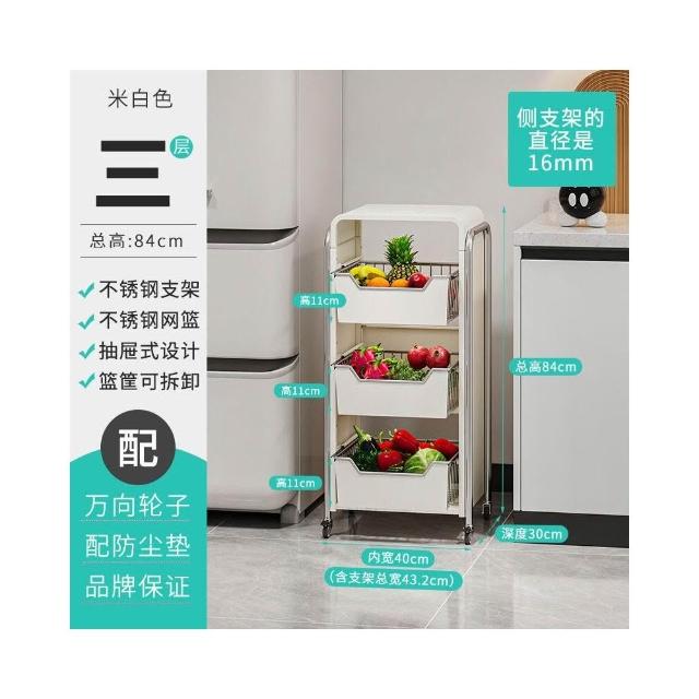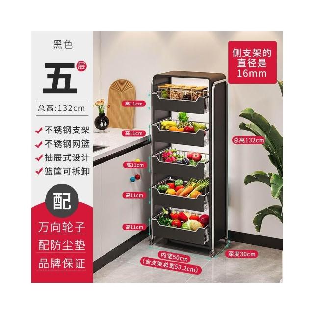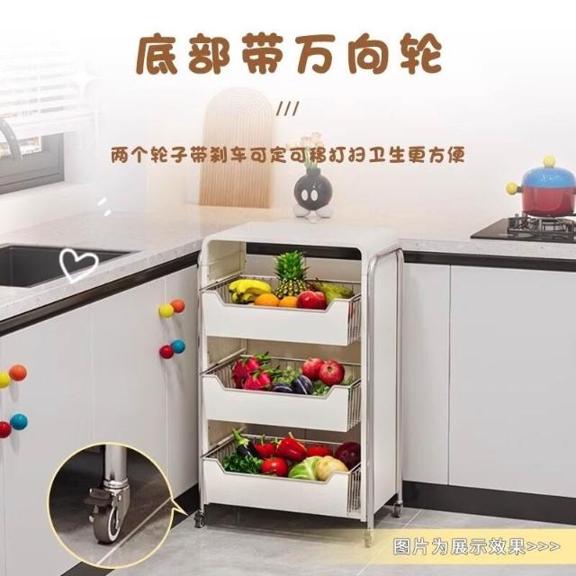 廚房蔬菜置物架 落地多層家用水果收納筐 多功能抽拉式儲物櫃 小推車