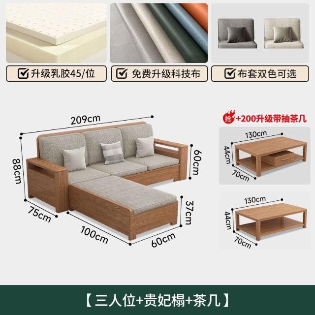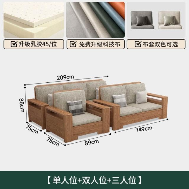 北歐白蠟木實木沙發組合布藝沙發現代簡約大小戶型客廳原木色家具